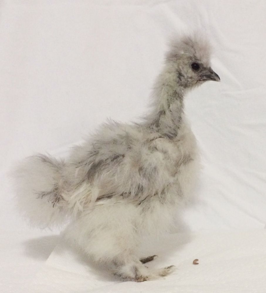 Splash Silkie with mealworm.