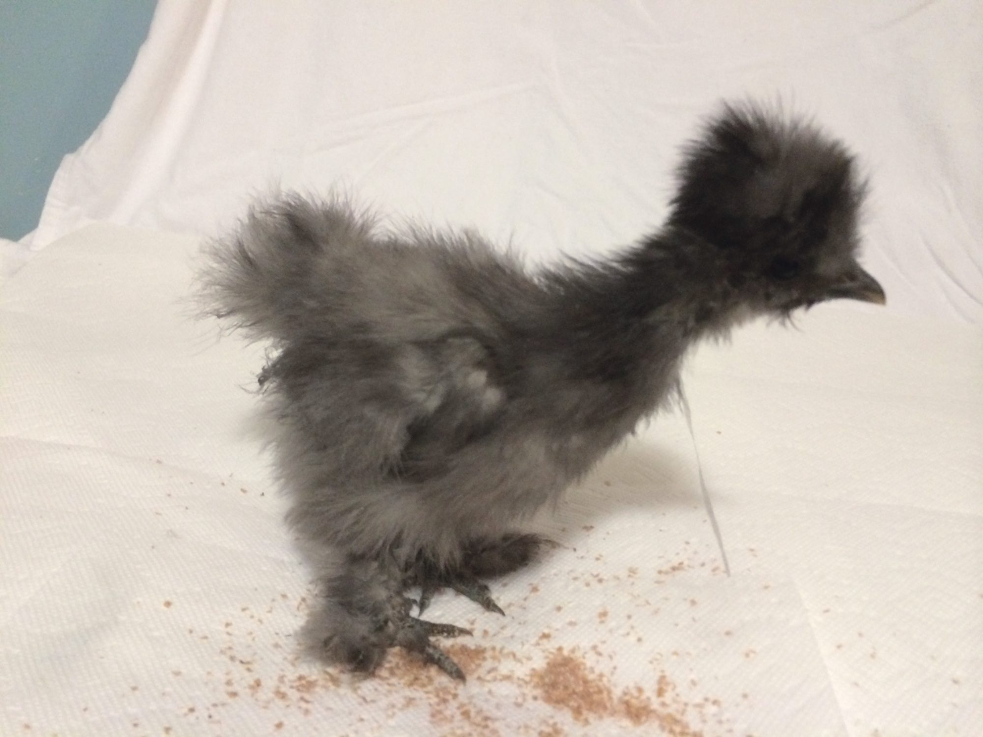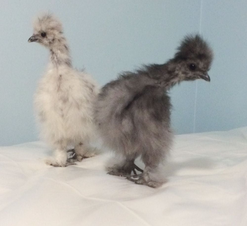 When I got back t the house three of th babies were racing around picking on each other just like siblings do... The other two never made it all the way out of their shells. They were zipped and ones head was stuck t the screen in the bator they were both dead. And none of the other eggs even pipped. We ended up with only three babies out of yours AND Kim's. None of Kim's chicks thrived. Took pics of all the chicks can you tell which are the Silkie babies?