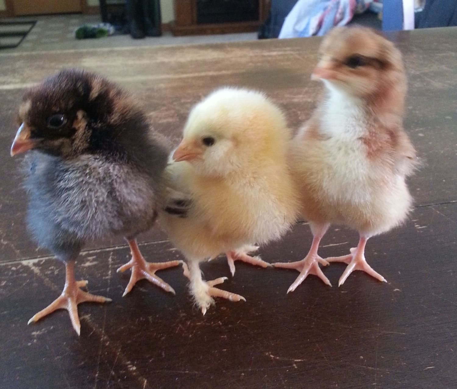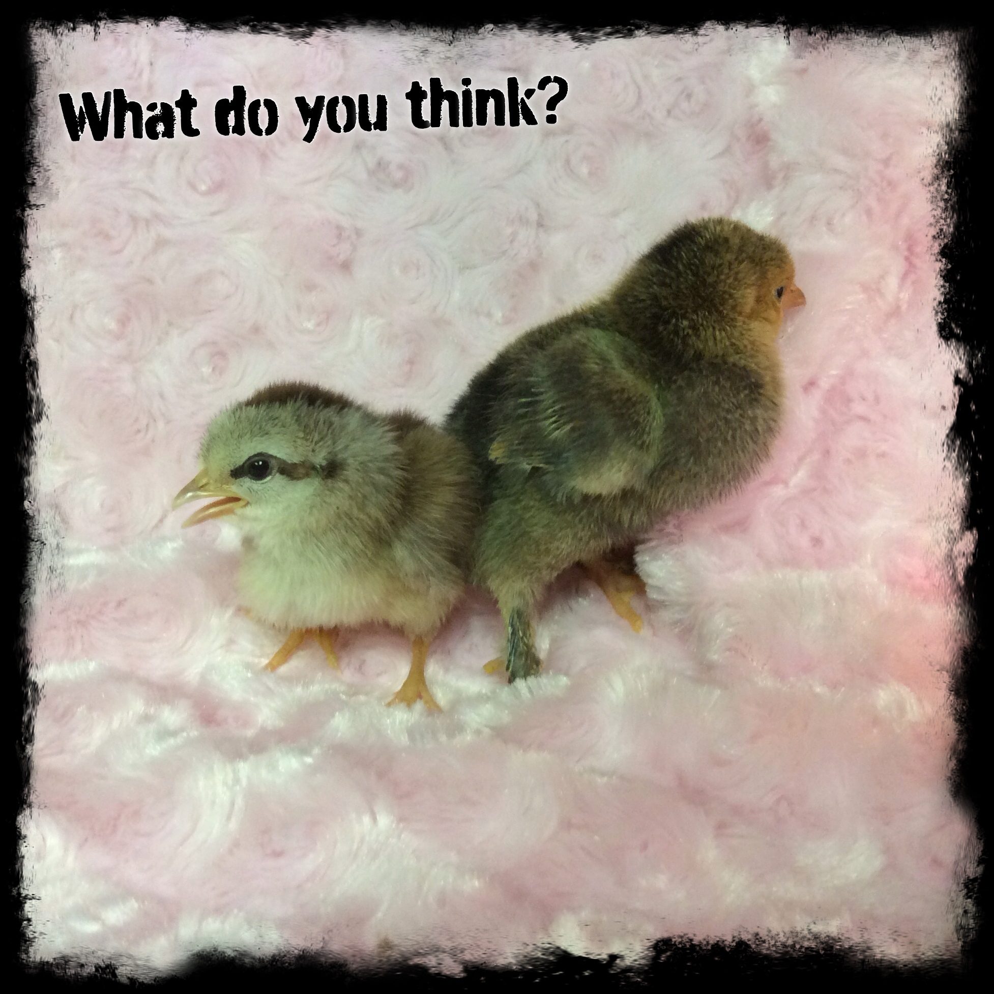 I made the trip to Rural King this morning and got some babies. I know what some of them are supposed to be but I'm stumped on my two bantams. I called the hatchery to see what they might be and one might be a Mille Fleur, but it looks just like my Easter Egger to me (at this point). I'm at a complete loss on the solid colored chick with the feathered legs. Any ideas are welcome.