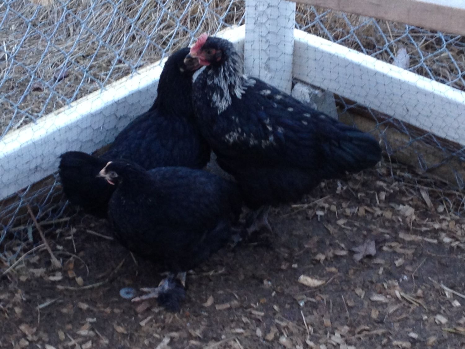 Speaking of babies! Here is an updated pic of my 11 week old Marans from Brad. I think the gender confused one is a pullet!!! I have named her PeeWee because she is so small! They have been outside next to my chickens for about a week. I had planned on putting them in with the older chickens at around 12 weeks, but PeeWee is so small I may wait. What do you guys think? The cockerel sure is beautiful! If anyone wants a Birchen Marans cockerel let me know! I will try keeping him if I don't find a home for him that won't eat him. I'm hoping he and Chewie will do ok but I don't really have the number of girls I need even for one Roo (he is starting to pull head feathers out from over breeding) so I am a bit worried about keeping two. It was obvious pretty early that he was a boy so I didn't handle him much to preserve his natural respect of humans (I had heard that handling them a lot as chicks can lead to mean roos later). He is free to a good home!