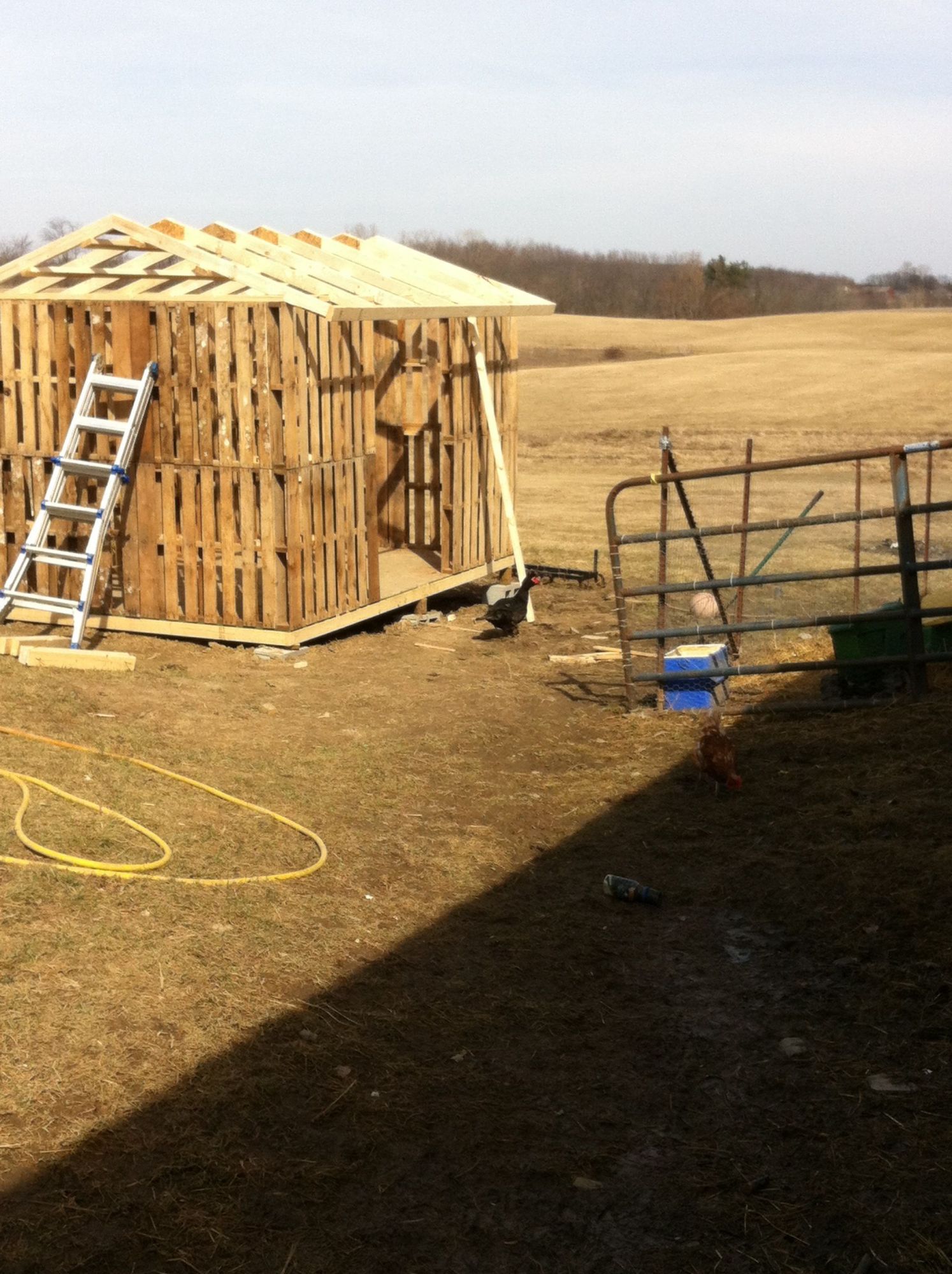 looks great so far. My coop is built out of pallets. Looks bout the same size as yours. I used pallet boards as over lapping siding. This summer Im putting a new roof on it. Coops are always in a work in progress. :-)