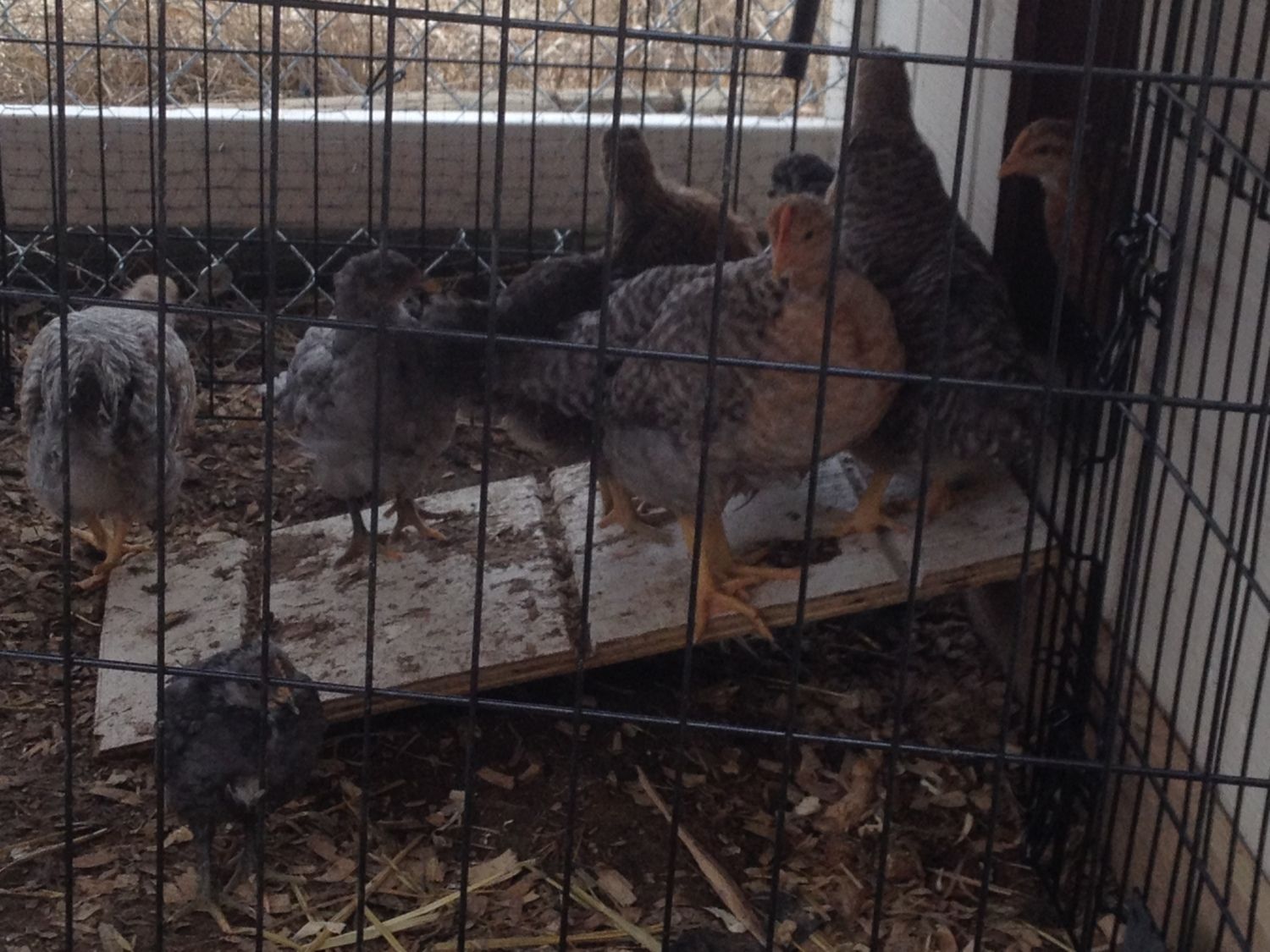 Babies in a pile on the ramp. This is actually their first trip outside!
