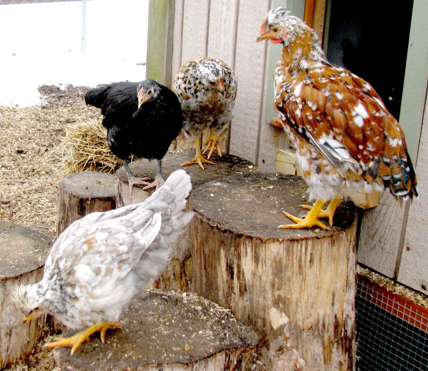 The piece of wood you see on the left side of my pics is an outdoor roost. They LOVE both. They play king of the hill on the stumps and sit on the roost to watch traffic. I feel like a chickens life is so boring and I only let them free range in the evenings, so I wanted to give them a playground! I'd love to hear other peoples ideas also! I wonder if they would use a tunnel?