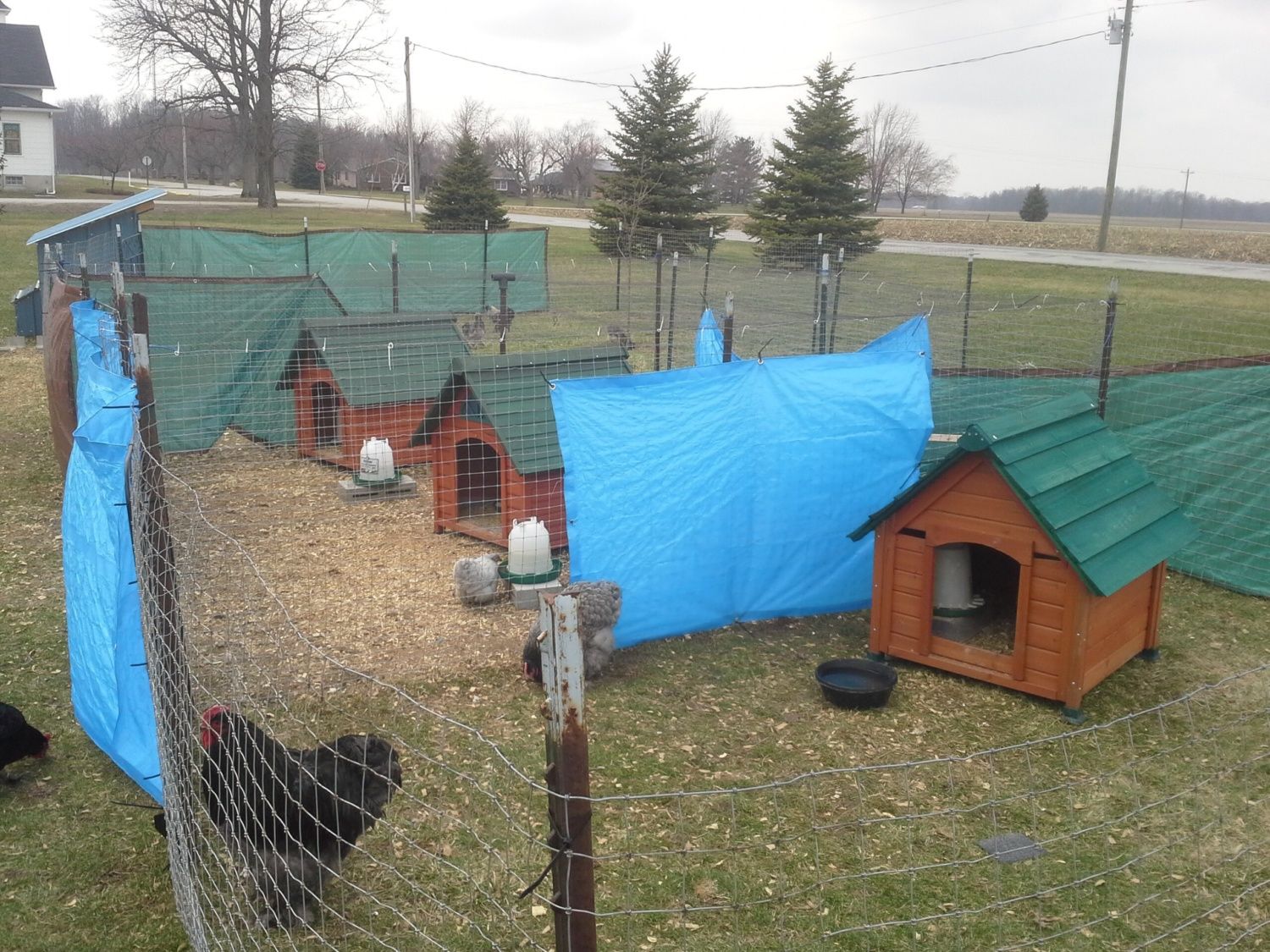 So, incase people are getting stressed out a out the price of coops, remember that anything that will keep them dry and out from the wind will likely work great as a coop. Example: my 3 clearance $15 or $20 dog houses!