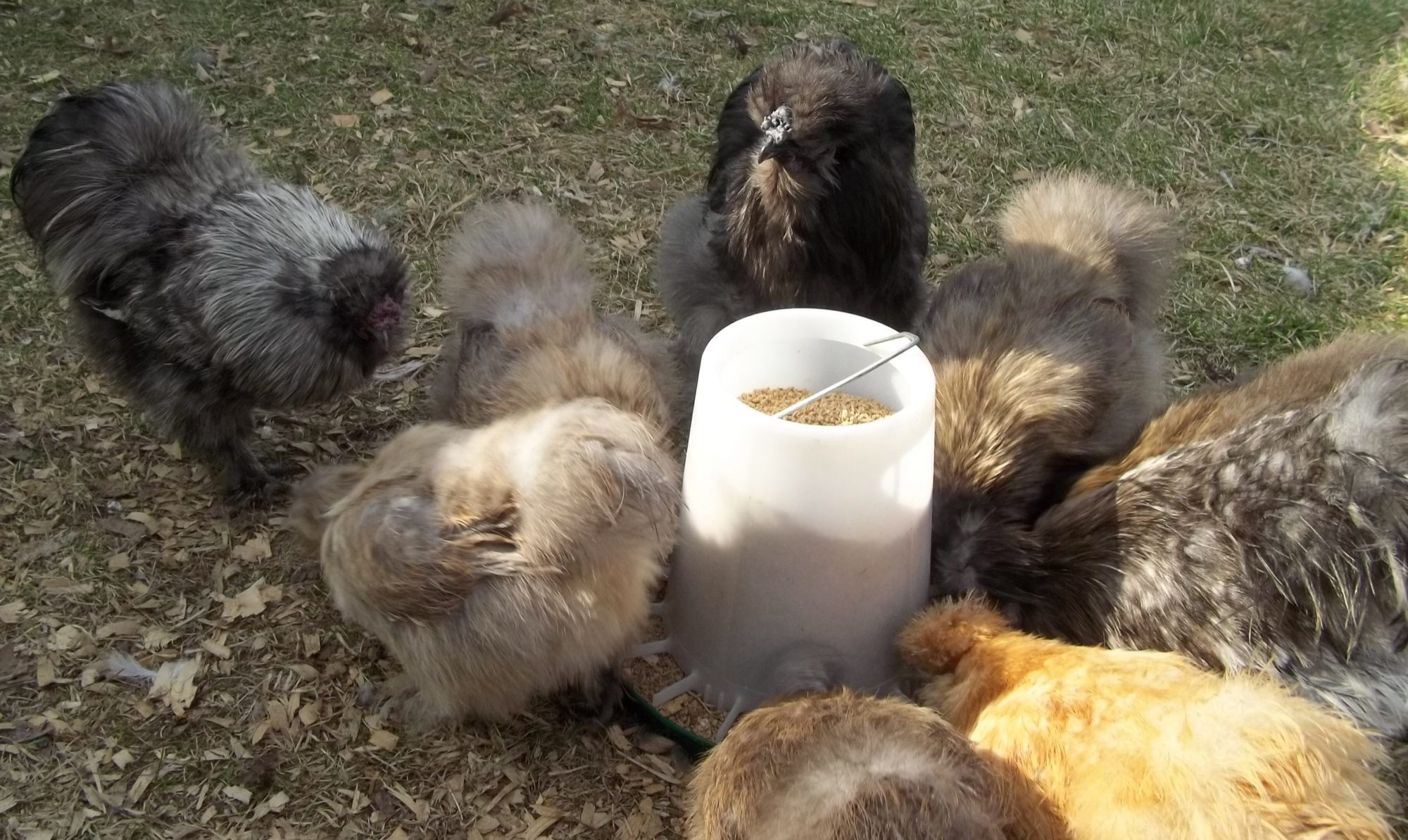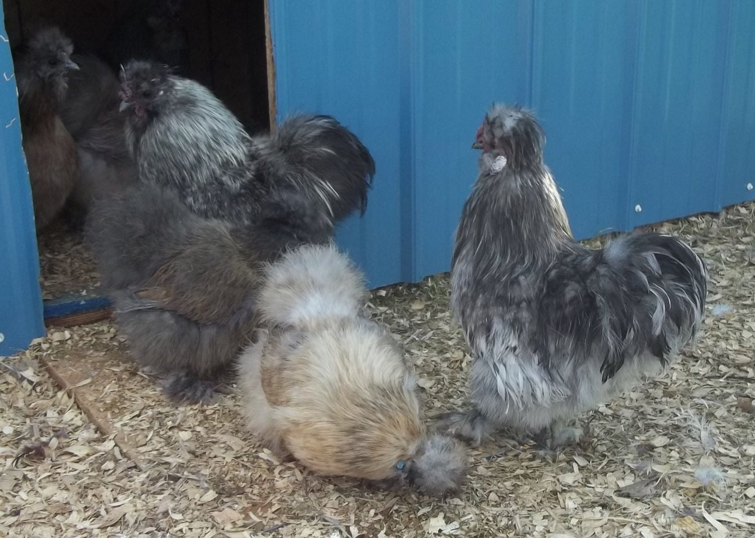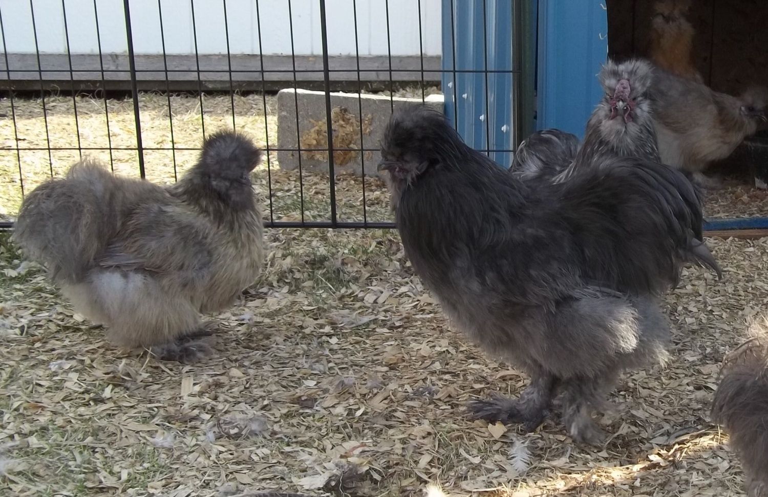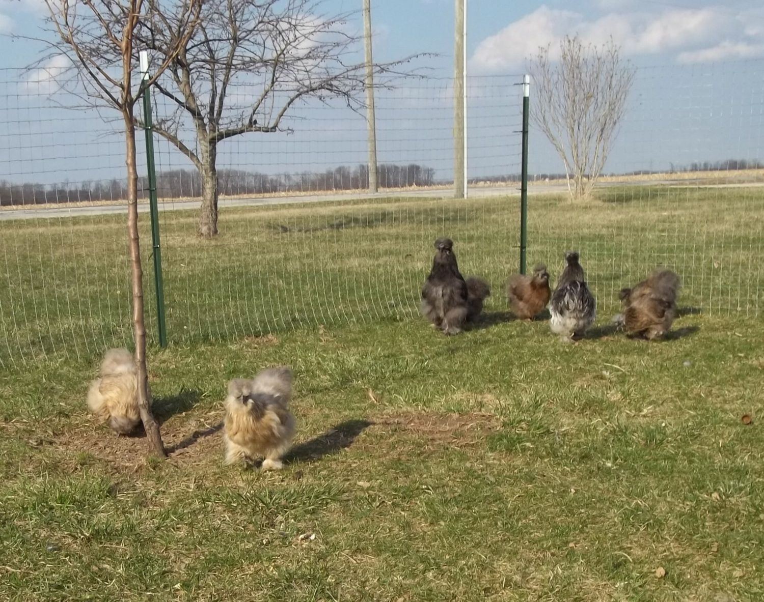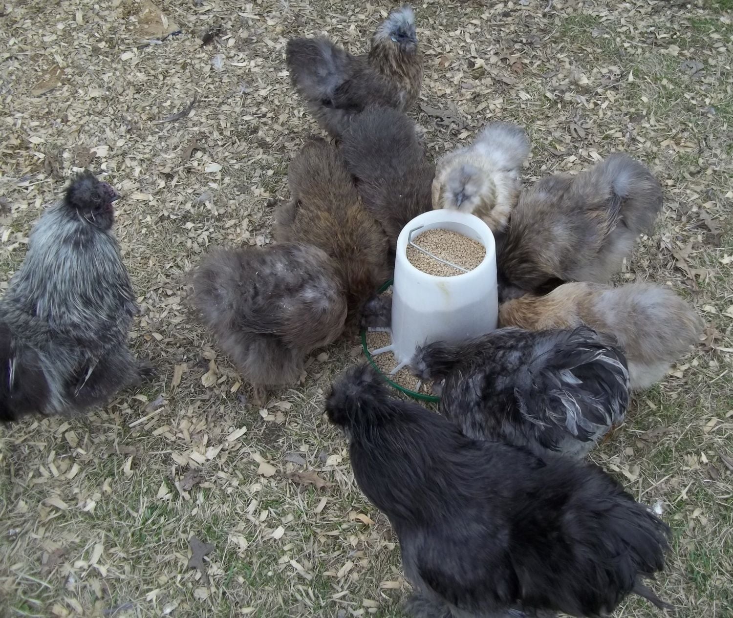 Well took some pictures of the silkie flock. I out half a dozen or so younger birds in with them. The older ones are still picking on them, but they are still eating or drinking. THey just spend majority if the day in the coop while the older ones are out in the run. Hopefully they start accepting them. Of the 6 younger chicks, at this time I'm only seeing one cockerel! Let's see if I'm right lol.