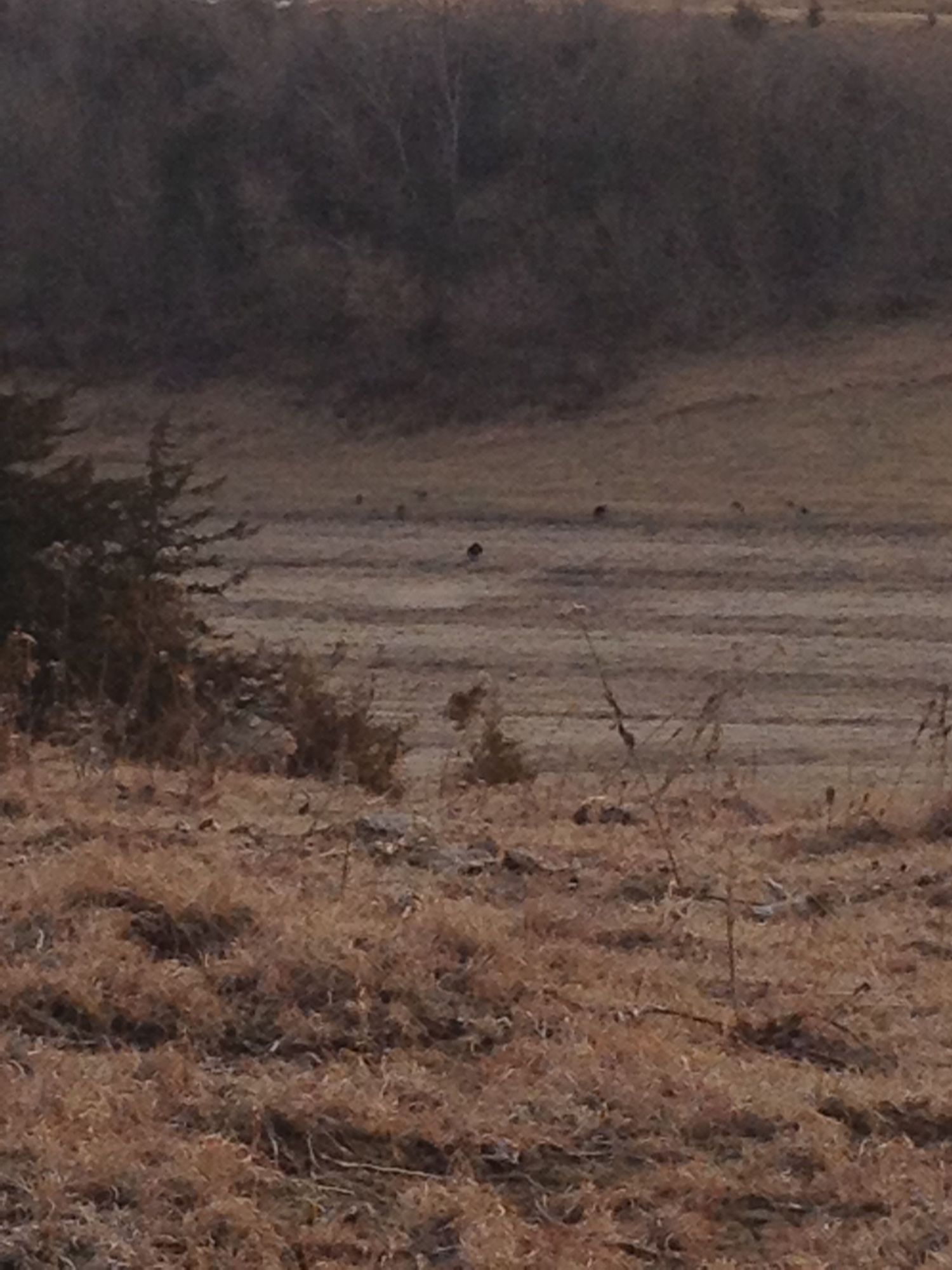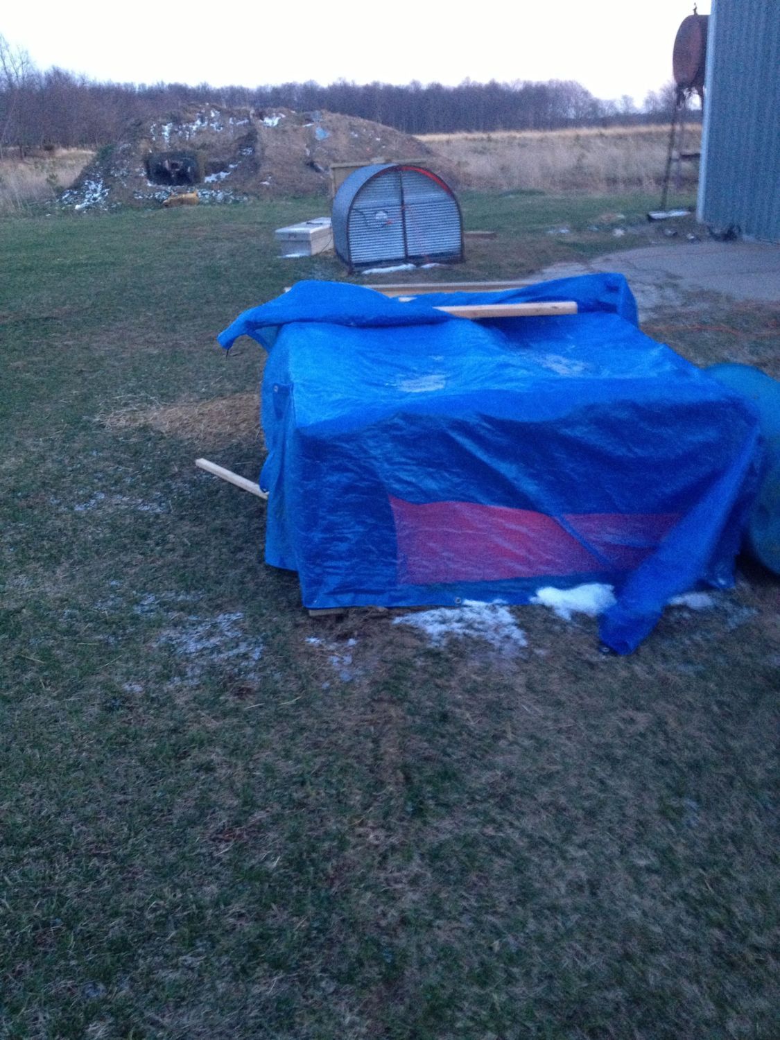 Well I am back just finished up a hunting trip in nebraska and it went to quick. there are turkeys strutting in this pick. This weather had to cover my chicken tractor both pens seem ok with cold