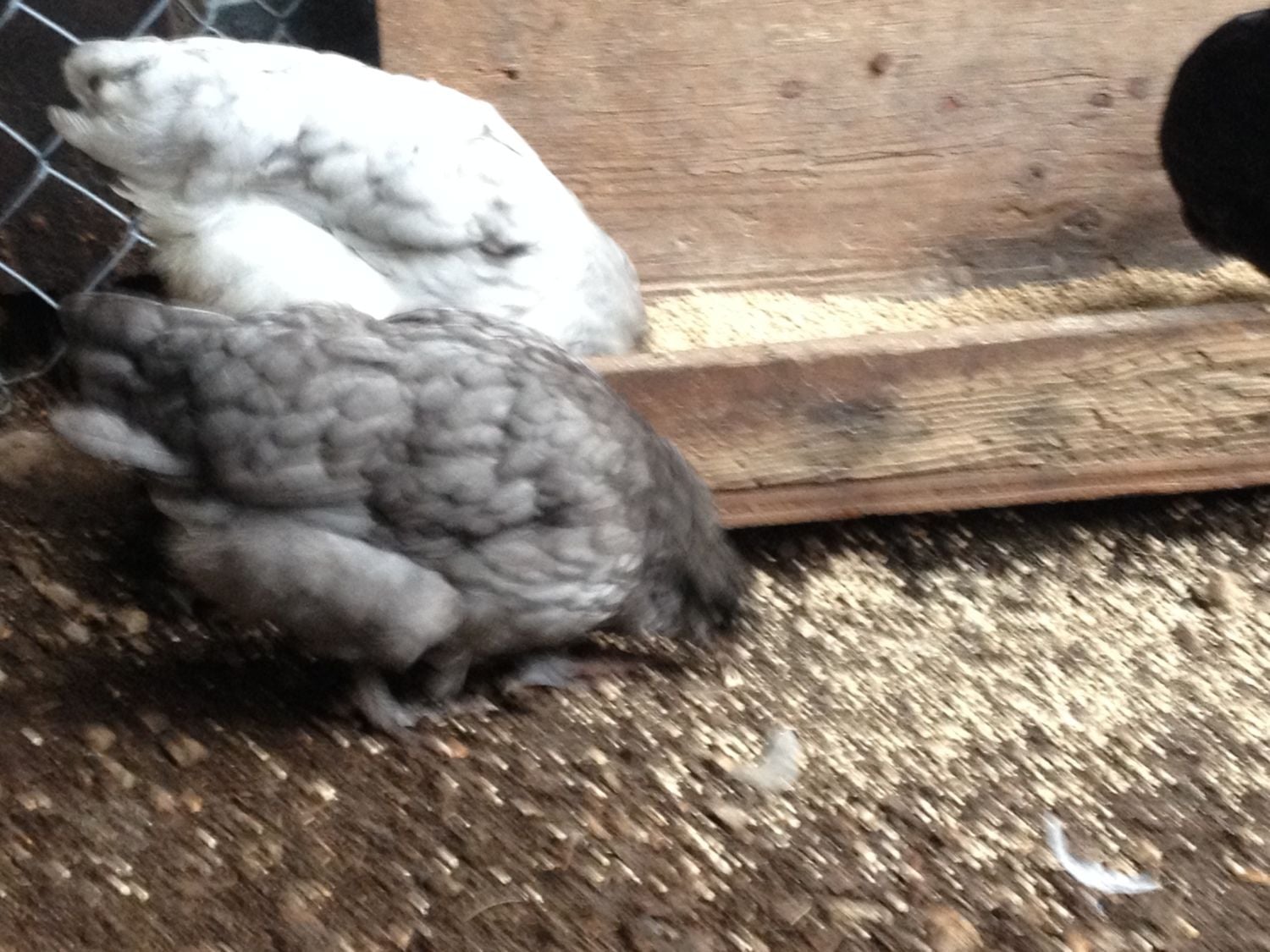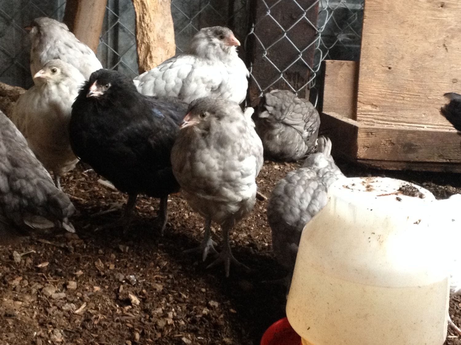 My BBS "baby" Ameraucanas turned two months old yesterday. Here are some very poor quality pics. The splashes are looking really good, you just can't tell in the pics since the glare took away the splashes, splashes.