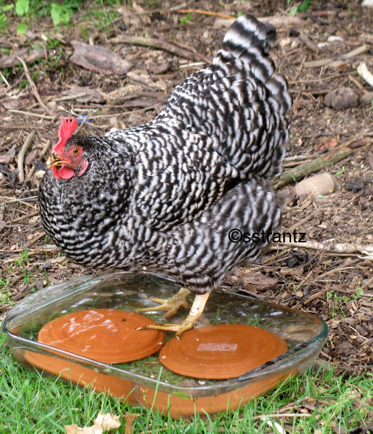 One thing I do in the heat is put out shallow pans with water in several places. I keep an eye out at resales for the 13x 9 or larger pyrex pans that I keep filled with water that they can stand in and drink from. Standing in the pans helps cool them off. I just go out with a hose and spray them out and refill from time to time during the day since if they're standing in them there will also be a poo from time to time.Did anyone else have chickens struggle in the heat yesterday. It was only low 80's, and some of them were panting pretty good. I put a fan on the babies today and added more shade outside. It makes me nervous for when it gets REALLY hot if they are already struggling now!