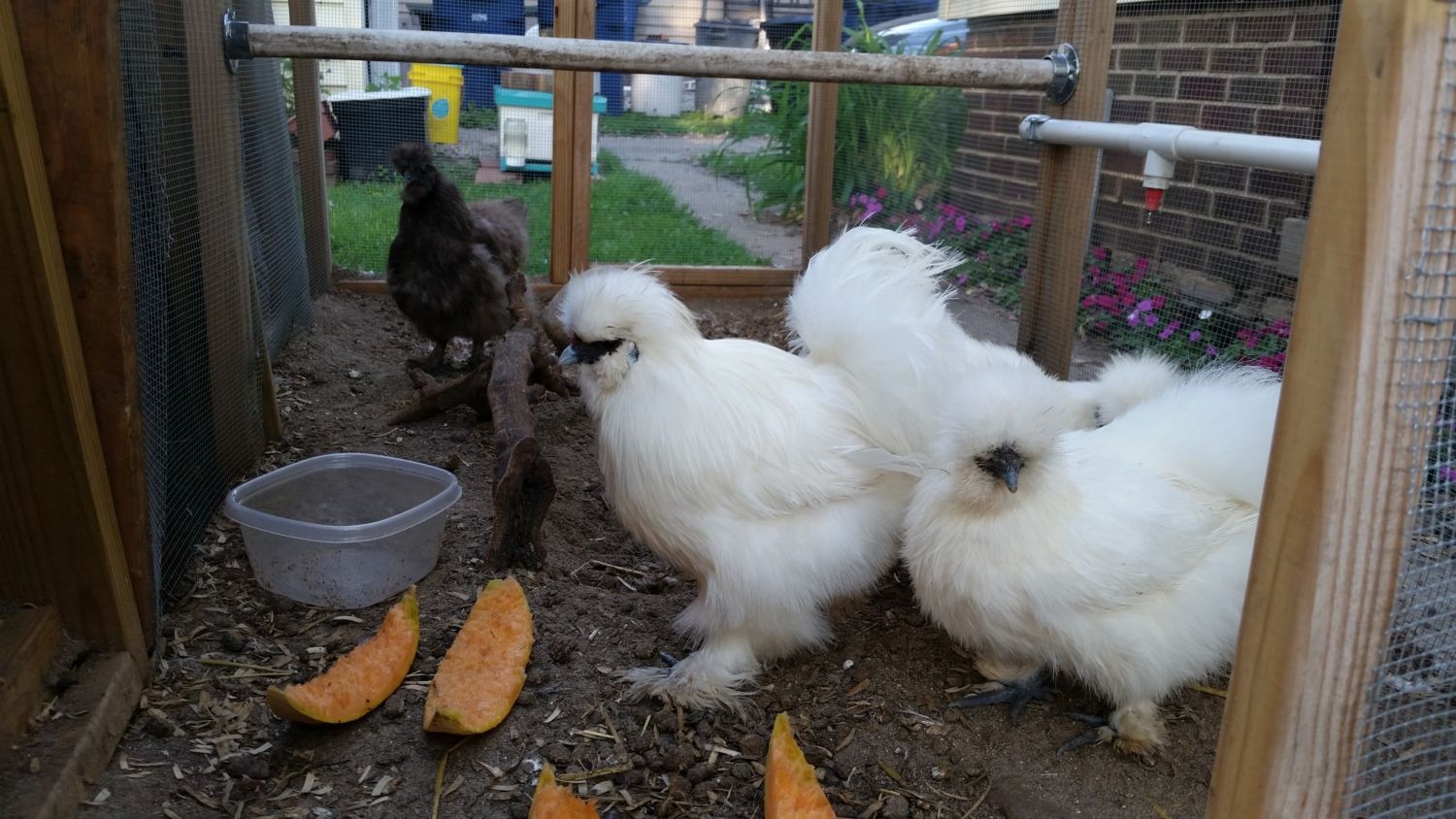 Also had time to slice up a cantaloupe and give some to the silkies. :)