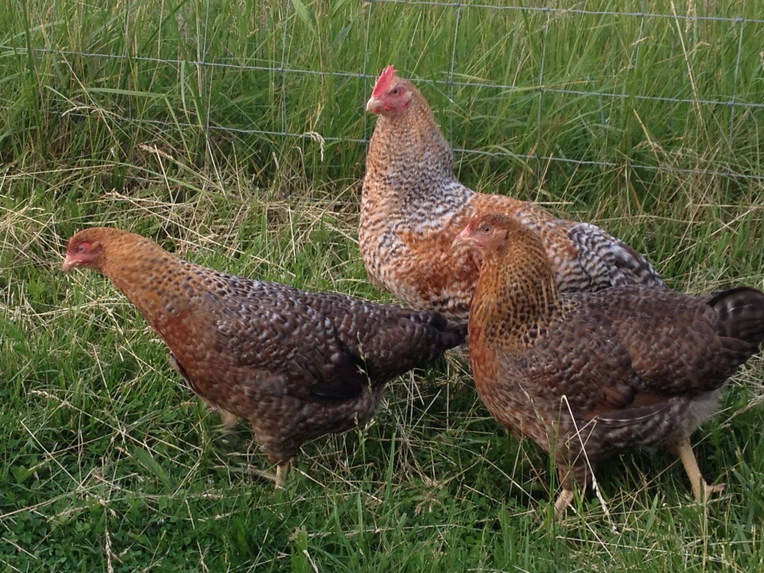 The Bielefelder bunch (the four youngster hens are not brave enough to free range, so these are the 16 week olds.