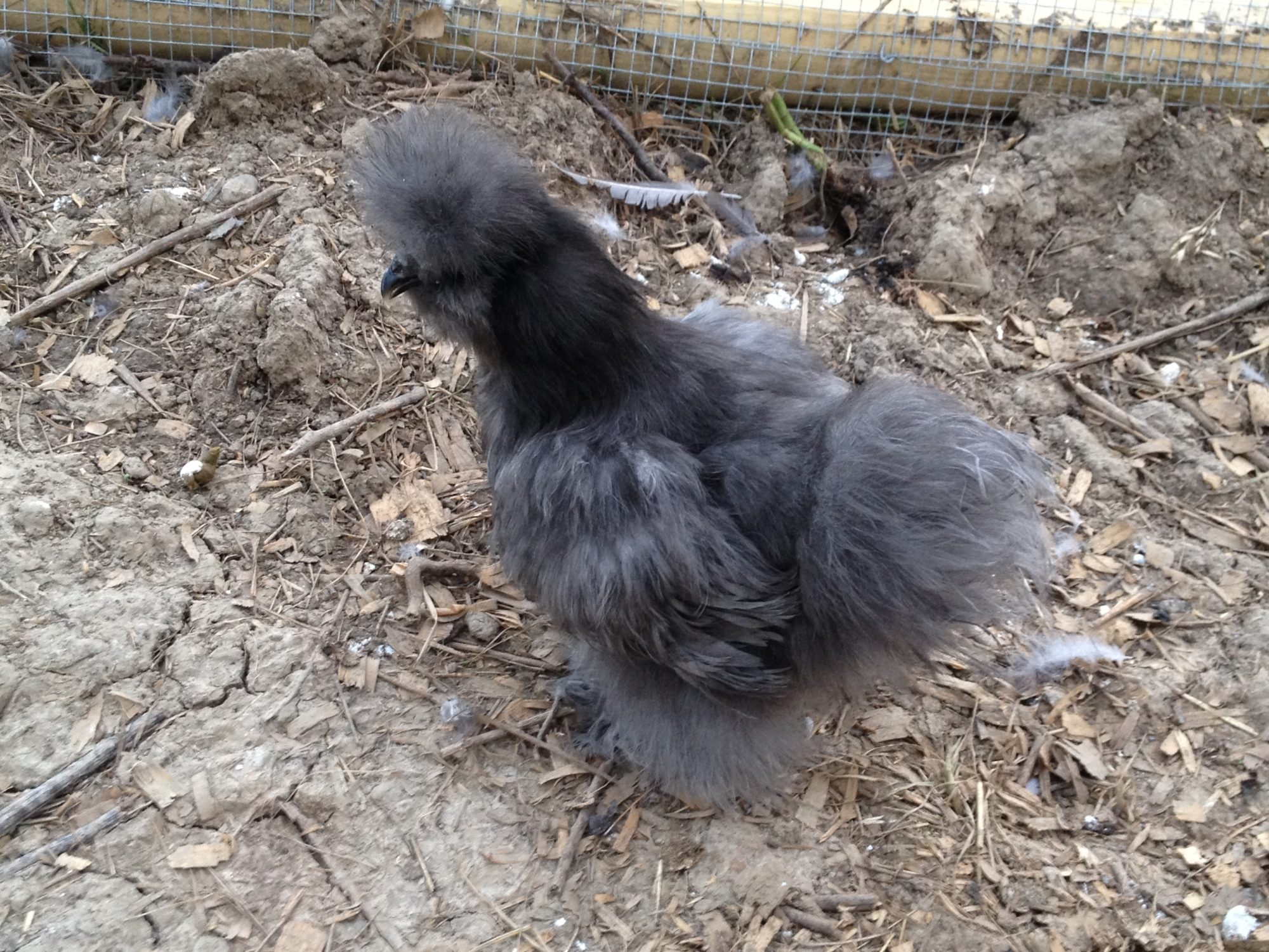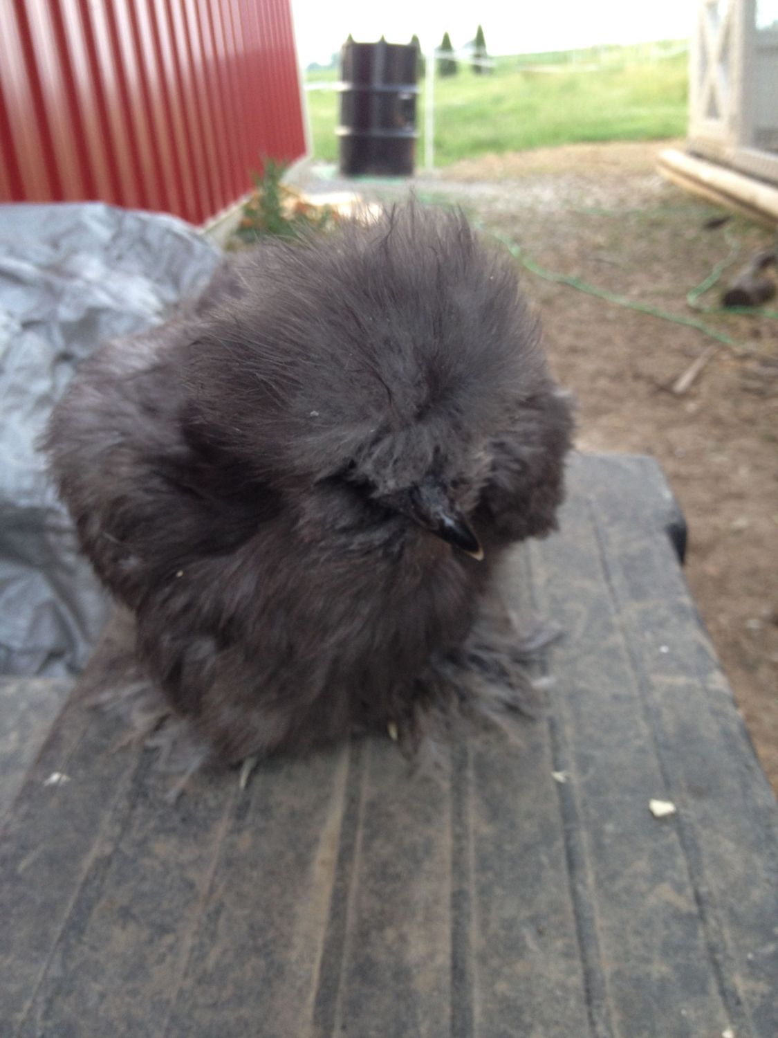 Crooked beak silkie - 14 weeks (I had to give it a hair cut in the front and it still needs some work - the poof ball was out of control and it couldn't see a dang thing)