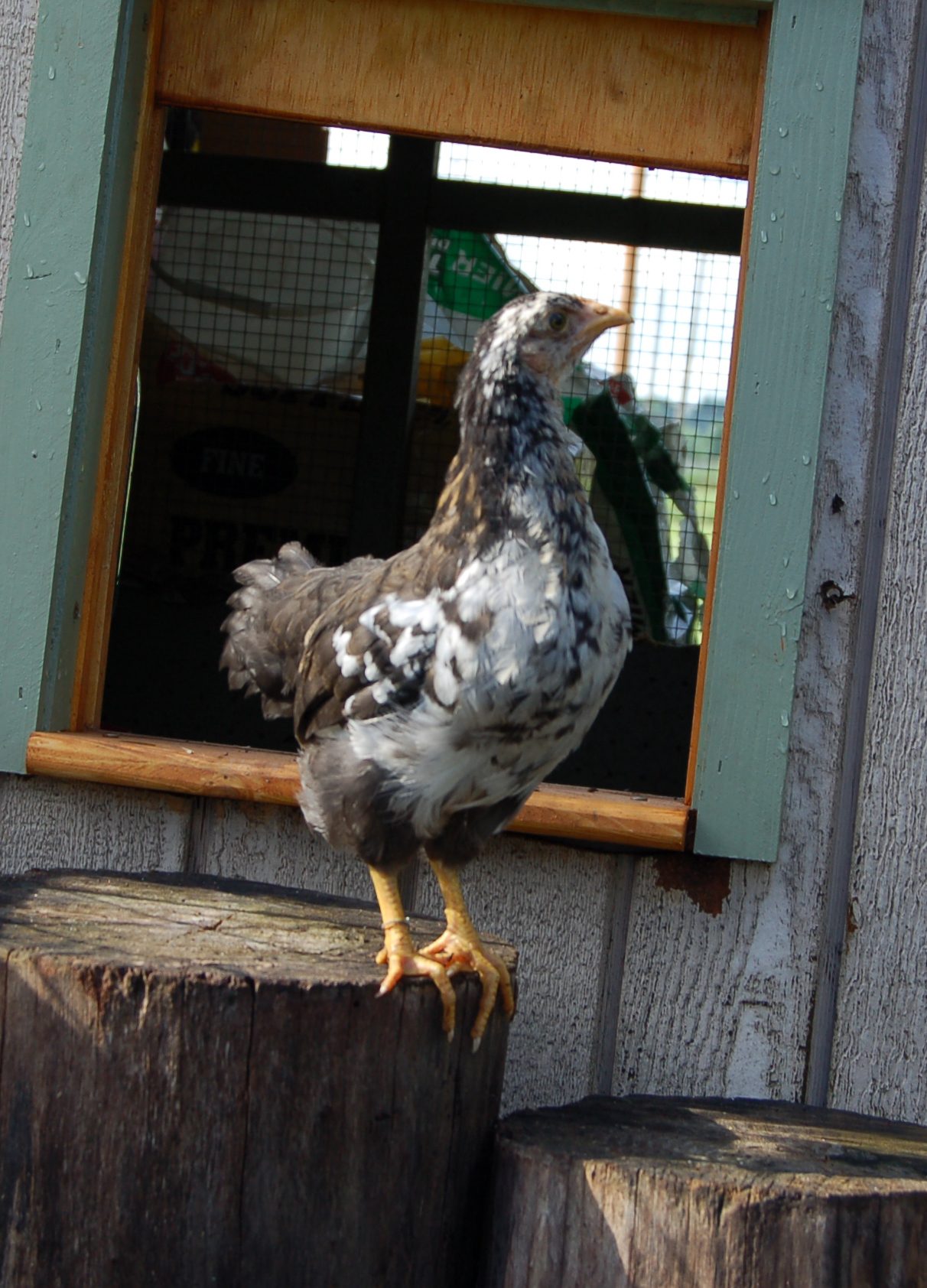 On a less crappy note, here are my 7 week olds. Their new brooder in the coop, and a few of Casper and Sheldon. :)