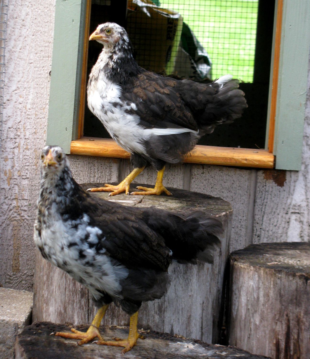 Some photos of the kiddos. Swedish Flower Hens. They'll be 7 wks in 2 days.