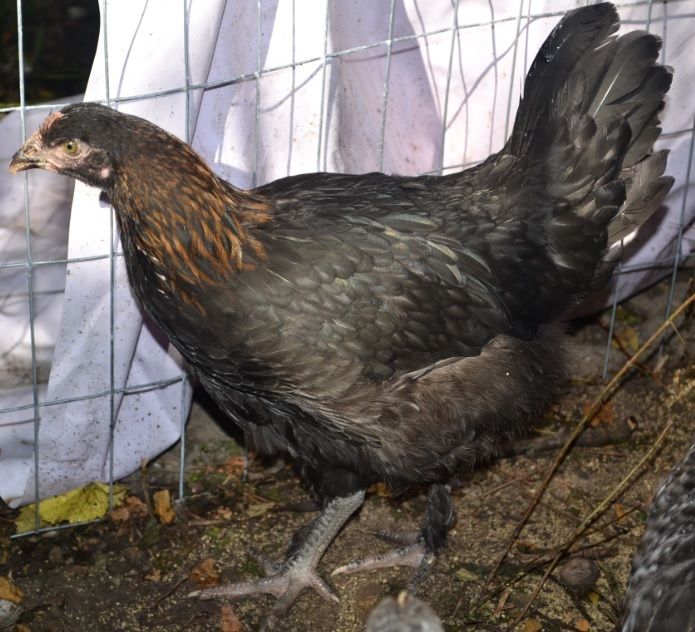 Georgette the clumsy Black Copper Marans--she is such a klutz! And she tries to eat the velcro off my clothing if there is any.