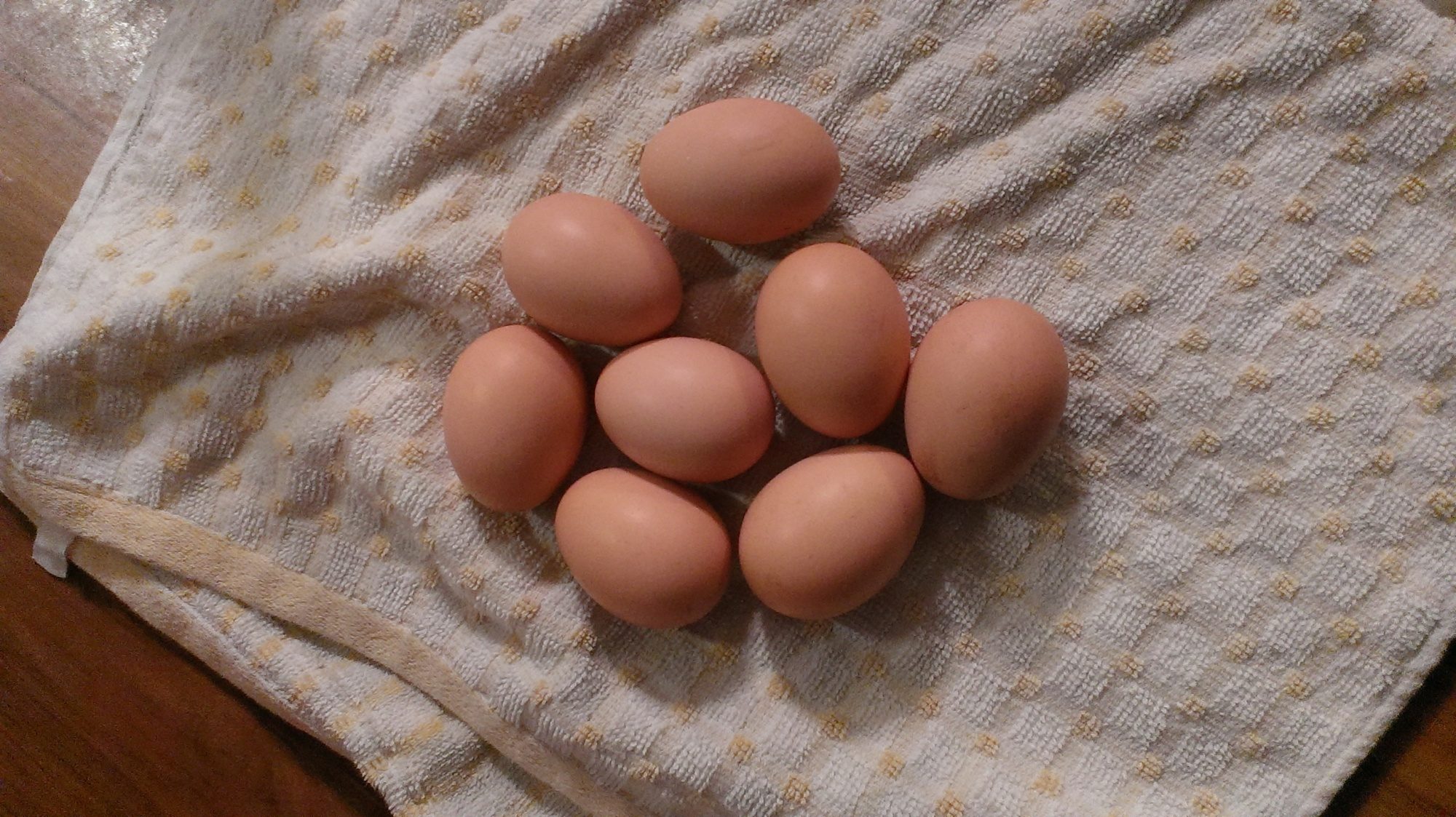 I found a nest of 7 in a pen of 5 pullets, so they started laying before I thought they would and now I don't know how old they are so I have them marked for the dogs. I'm guessing they are 3 -4 days old cause they were all brn eggs and I only have 2 brn egg pullets in that pen. the other 3 are EE and I am really hoping they aren't laying brn eggs.... will be so disappointed.