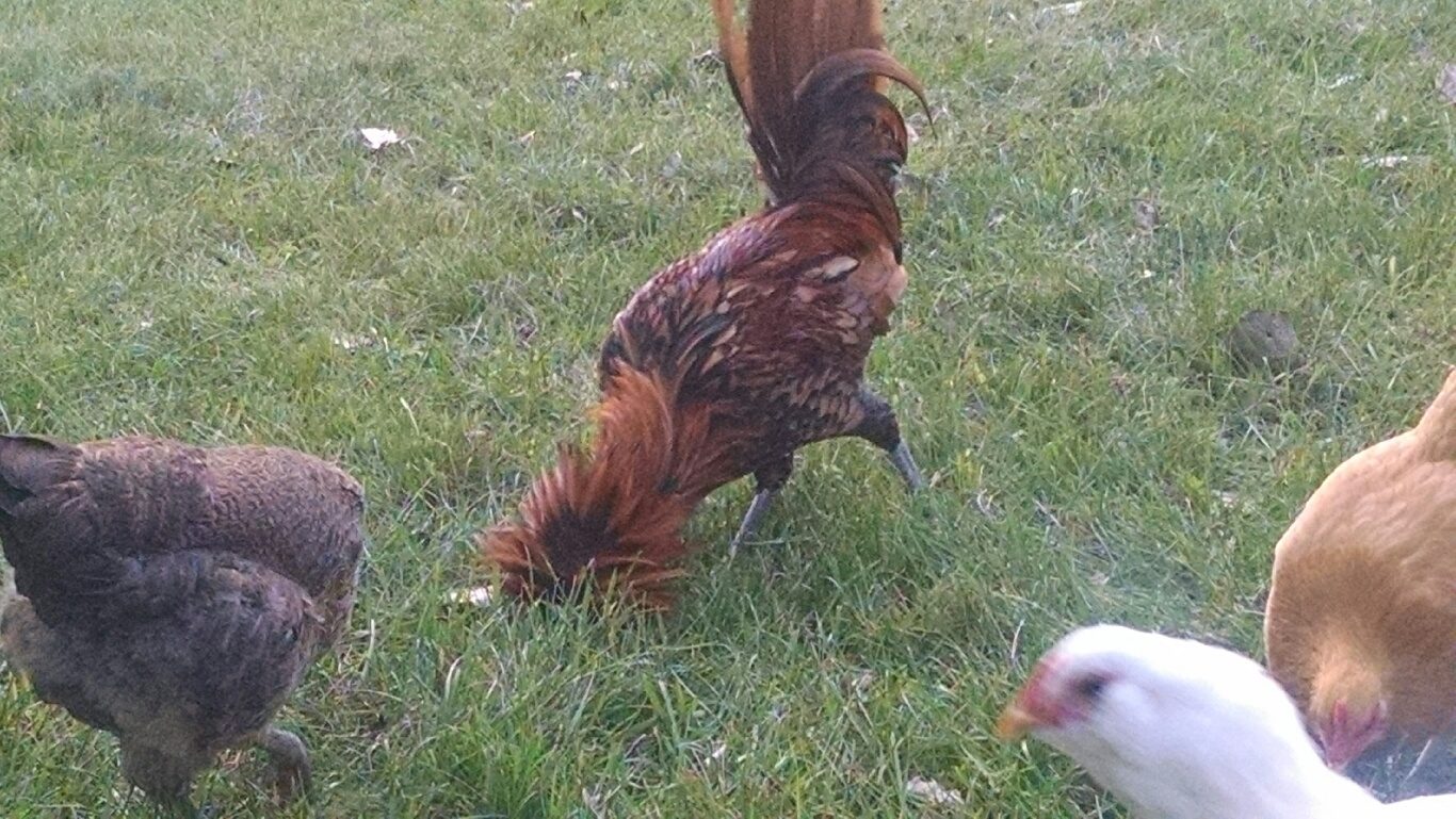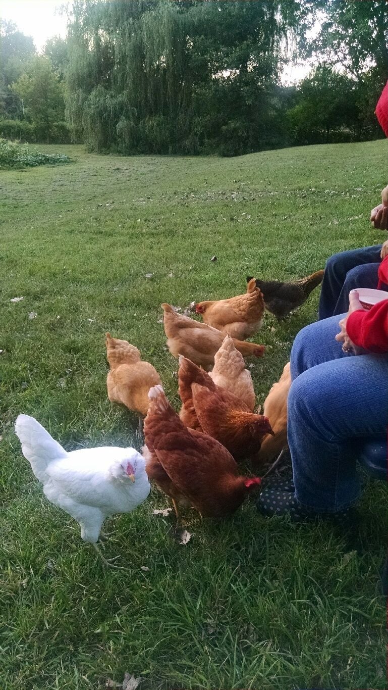 I need to try to get some good shots of the girls this weekend. Here is my favorite girl, Pee Wee, one of the Birchen Marans from Brad. She was the gender confused one as a baby, and then had a bout with broodiness a few weeks ago. I managed to talk her out of it. She is super friendly!