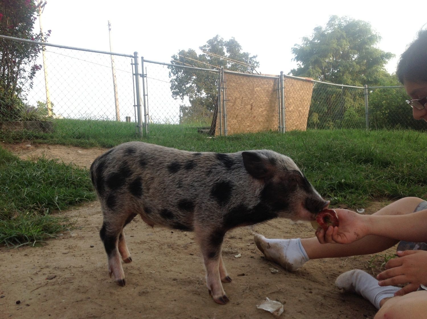 My daughter had been asking for a pig for awhile now. She was very excited to get him. He is 5 months old and she named him Prince Julian.