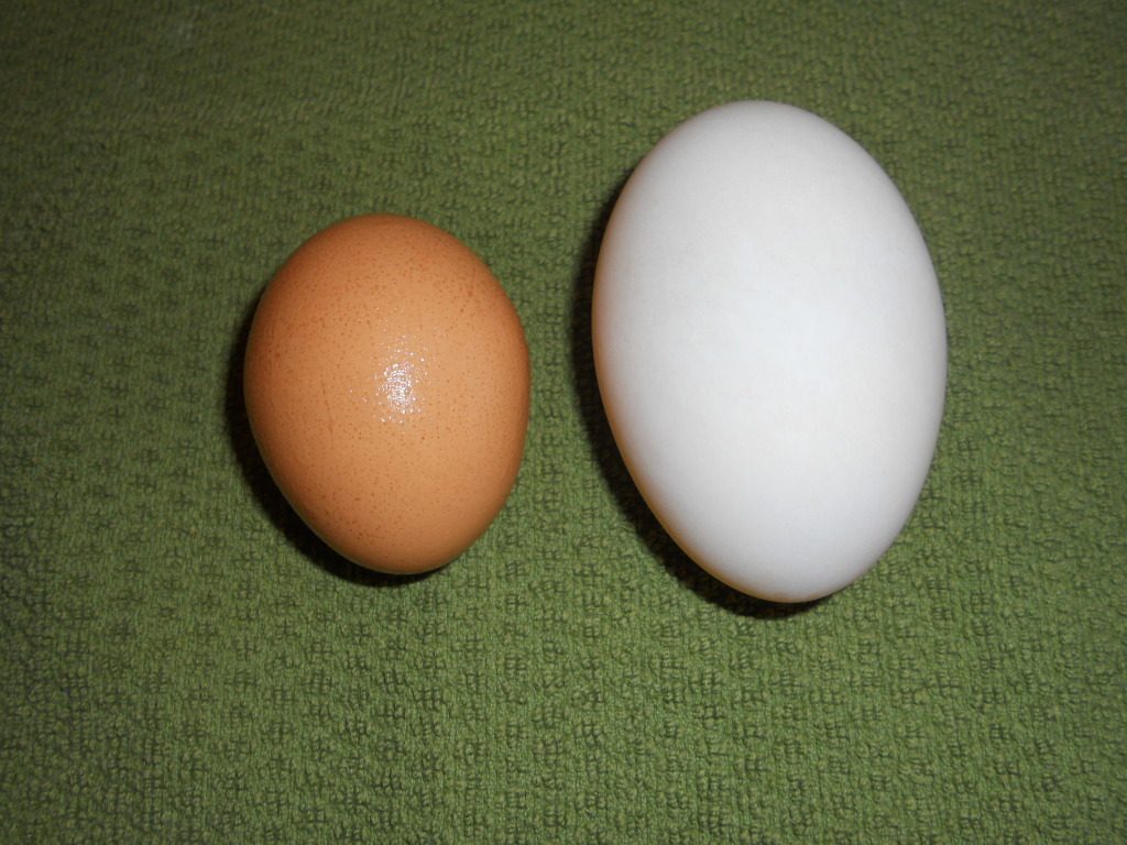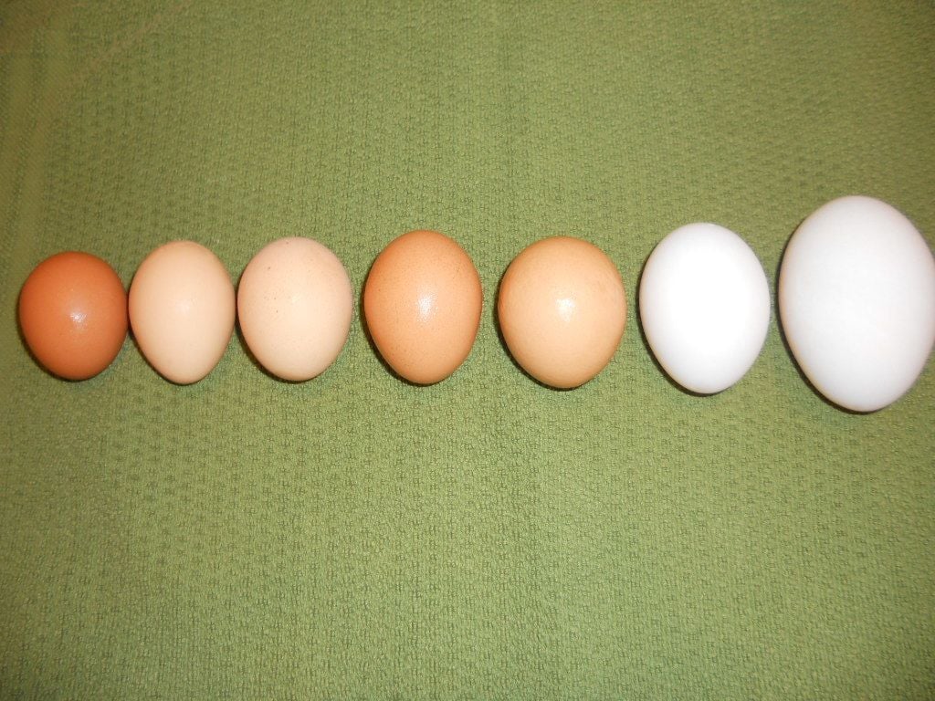 size comparison: small, medium, large, XL & jumbo chicken eggs, typical duck egg, giant duck egg!