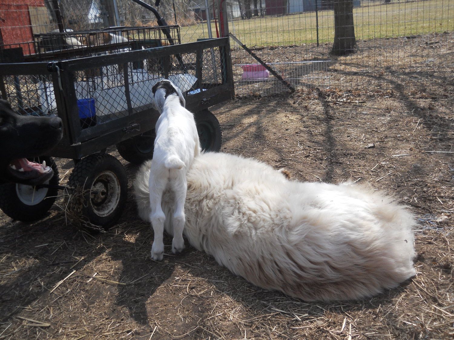 1. Implement the plan to prevent the addition from flooding! My thought was to bury some clear plastic around the base of it and staple the top edge to the bottom of the addition's wall. (ETA For clarity here, the addition is two layers of cinder blocks and then wooden walls. The water comes in between the cinder blocks because we only used enough cement to hold them firmly together.) Thoughts, anyone? I would use caulk or something, but I'm relatively sure the girls would just eat that off the bricks. They don't seem as interested in eating the plastic wrap, anyway, but who knows?