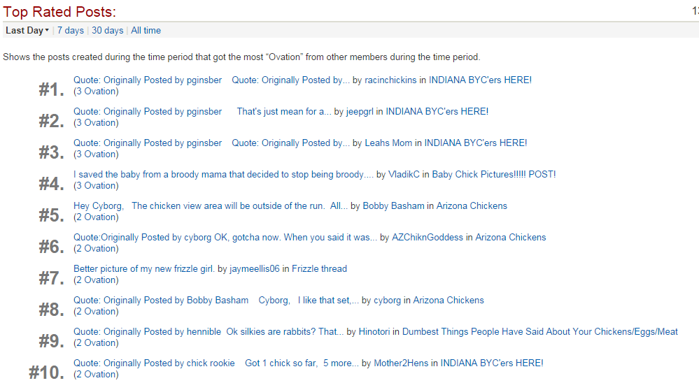 Great catch! There are 4 posts in the top ten most rated from the Indiana thread. Looks like Arizona is popular too, they were listed #3 most popular thread today. Must be us Hoosiers are prepping for Winter unlike those Arizonians. JKwas reading the home page this morning and for best post? i think it was, Indiana byc ers got 1st,2nd, 3rd and 10th place.congrats. to the posters![]()