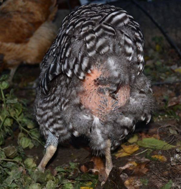Well, Frou'f has never gone broody, but I'm not sure she's a good indicator for the variety since she really doesn't lay many eggs, anyway. :lol: Just make sure Sally doesn't drive a convertible. ;) My Diana does this every year. She doesn't look too bad overall (bald in some spots, but nothing worse than some other molts in my flock), but every year she loses all her butt feathers like this. :lol: Here's her molt last year: