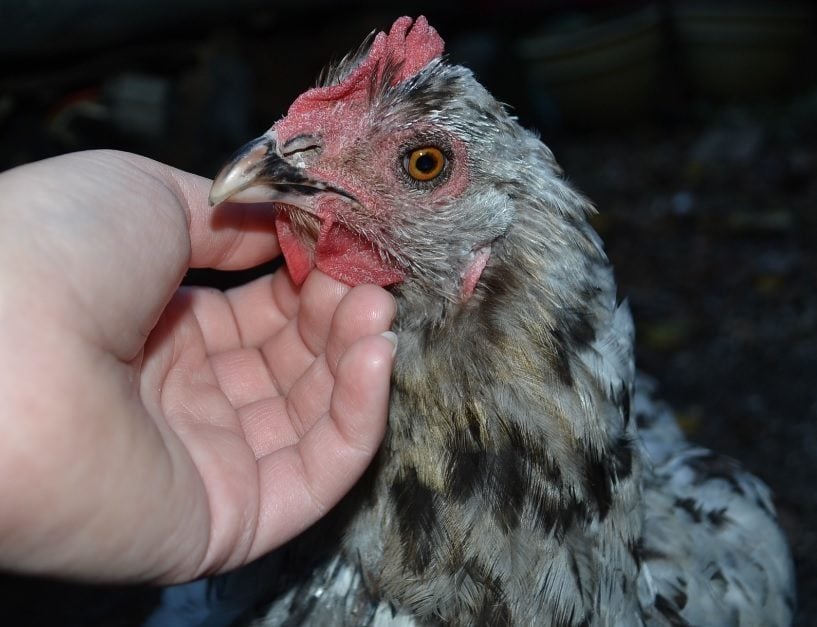 Although Nene is the smallest hen, she’s the Flock Leader. As a daily reminder, Nene walks up to a hen (who braces herself) as Nene inflicts one forceful peck to the hen’s head. The pecking order is a real headache!