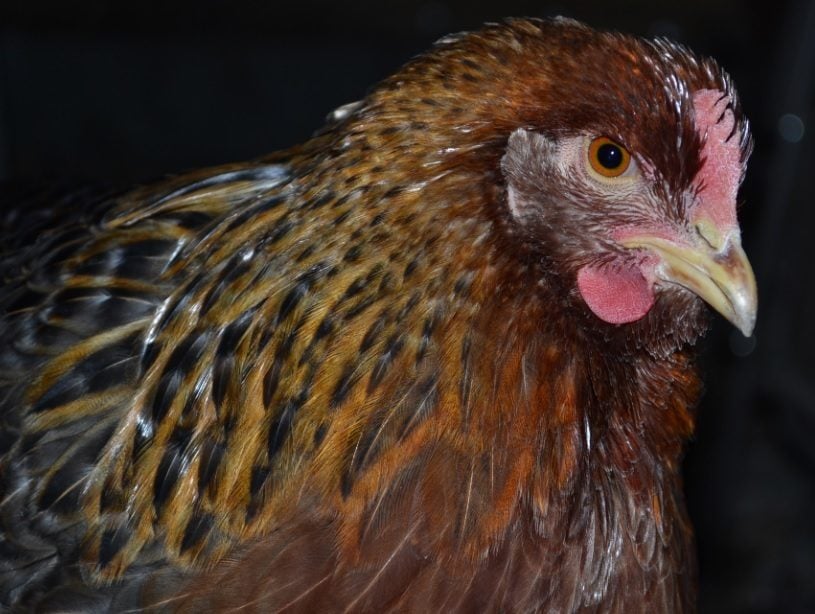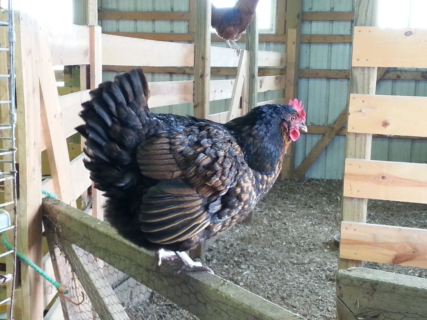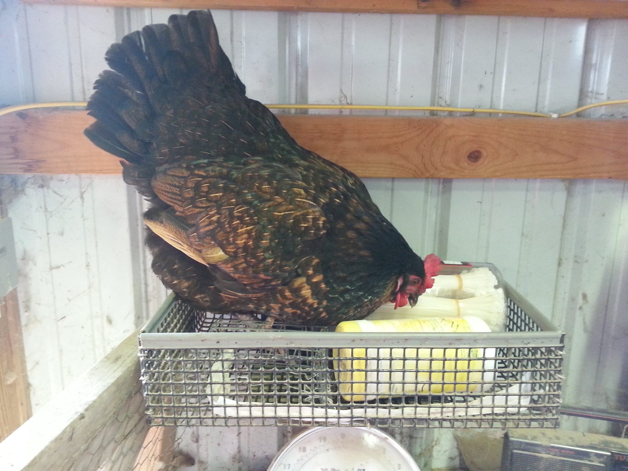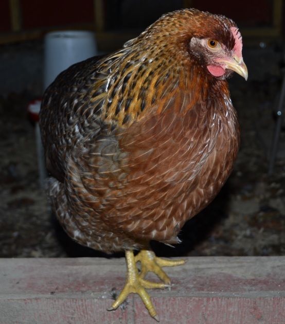 Our chicken experience started in March 2012 when my daughter bought six Rhode Island Red “pullets” at Rural King. We were such newbies that we worried that one chicked named Nene looked odd, but it turned out that she was the only pullet! We joked about dropping off the five cockerels to RK’s “Returns & Exchanges” desk! Nene’s floppy comb is a little odd, and I once read that as a breed standard, it is considered “undesirable.” However, Nene is unique, and it fits her quirky character.