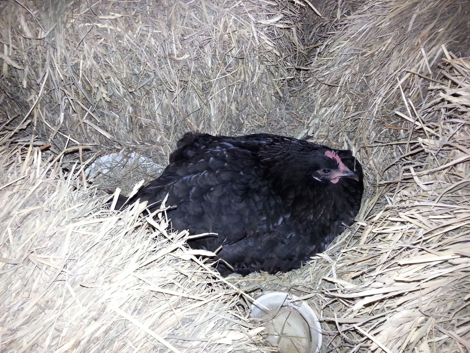 Tomorrow is scheduled to be hatch day for my australorp, Maggie. She went broody in February and hatched 7 mixed breed chicks. This time she could hatch up to 8 ducklings -- yes, ducklings. I didn't need any more chicks so we let her sit on some duck eggs to see what would happen. This time will be interesting because of where she decided to go broody -- in the center space where 4 hay bales came together -- obviously not stacked tightly enough together!