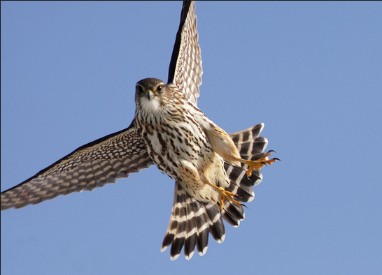 I didn't take the picture of the Merlin Falcon, it is from Flickr. But this is exactly what was flying towards me! Most of the chickens had gotten into the coop. I had 2 roosters and a hen outside staying still fending off the bird. The littles (3 month old silkies) were huddled together under berry bushes and totally camouflaged. No one got hurt, and the bird flew away. I am so paranoid about leaving them out though now. It's been a few days and they have been cooped up.