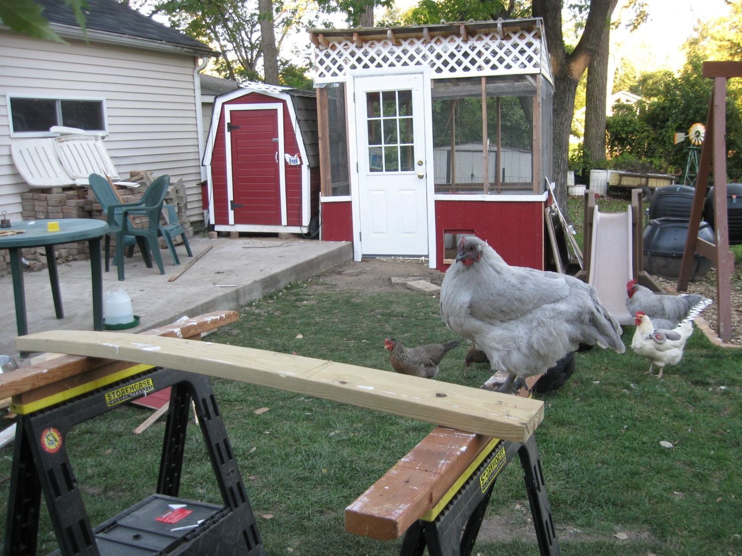 Next will come some clear vinyl in frames. This way we only have to screw them in place each winter & store them in the garage over the summer. You may also notice a big pile of bricks. Hope to turn that into a walkway from the coop. Again a donation from a (different) neighbor.