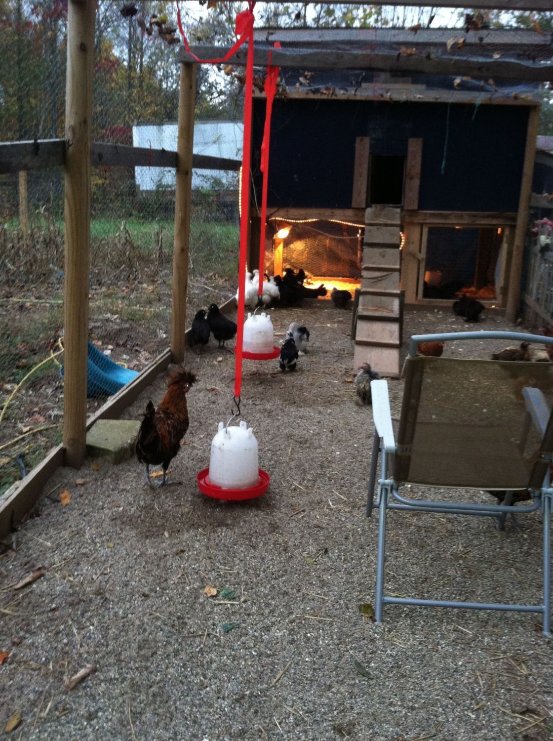 What a busy couple of days. Got both coops all ready for winter and everyone has moved into their new digs.We actually moved the big chickens into "Chick Commander " last night and I actually got some eggs in the new nesting boxes
