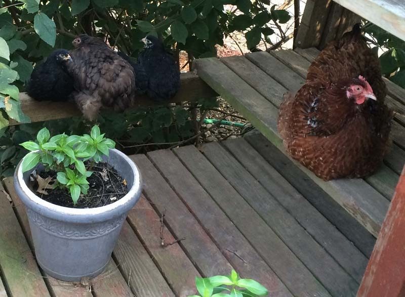 Thank you! Bonbon actually looks thin and run-down from being a Mom. She's still making the special feeding noise and feeding the chicks way more than herself. DH commented that Friday is almost as big as Bonbon, so she needs to stop treating them like tiny chicks. So true, but soon she'll decide she's done mothering and that will be a shock to the chicks. I remember last time when she went from Best Mom in the World to pecking her chicks away like she'd never seen them before! Those poor things needed therapy.