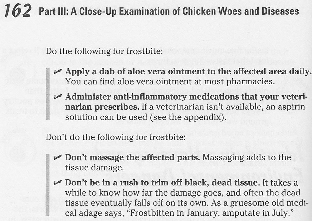 Here is some info from "Chicken Health for Dummies" about Frostbite