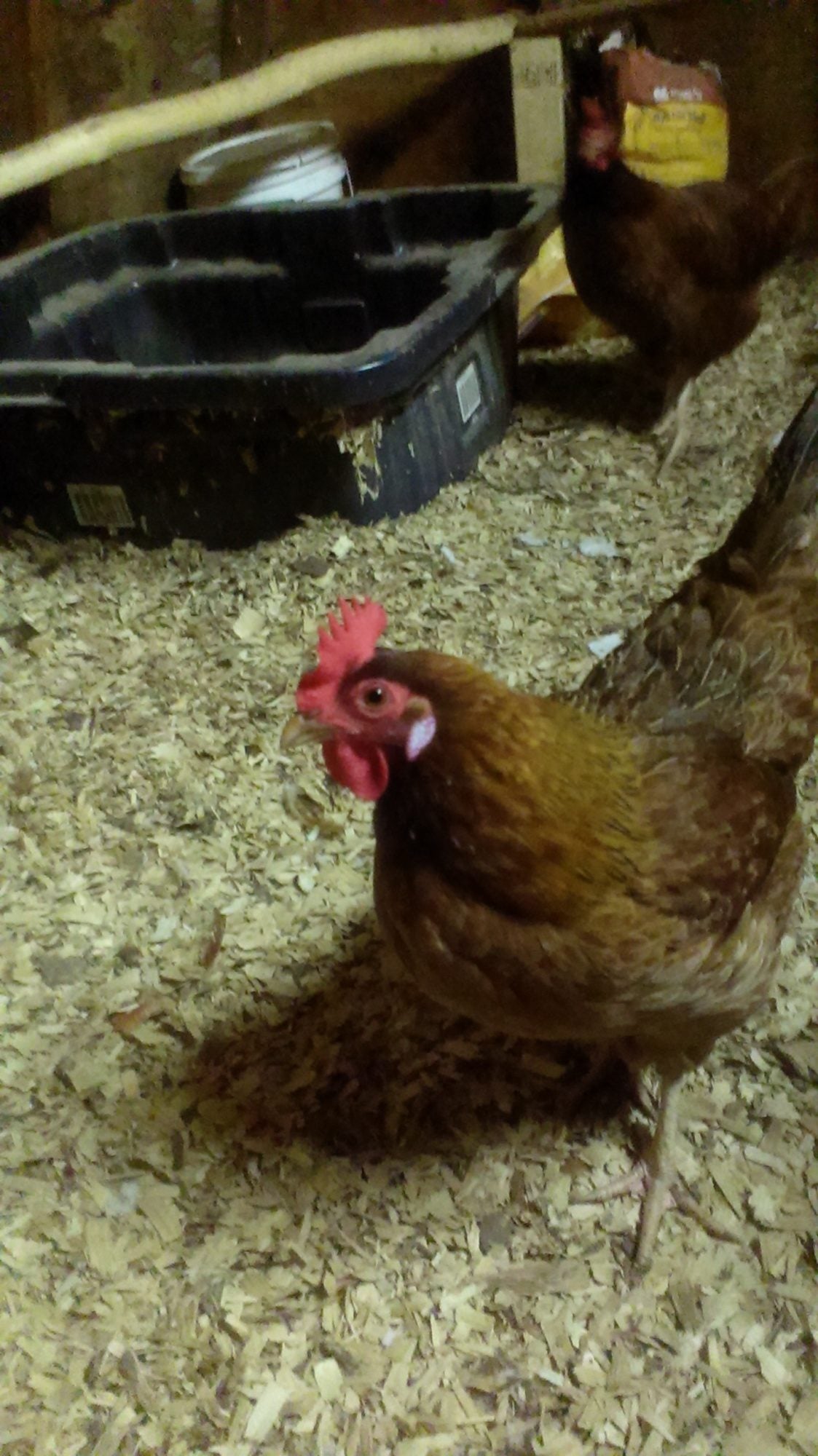 The hen is Ariel, the Golden Comet. She is very confused.