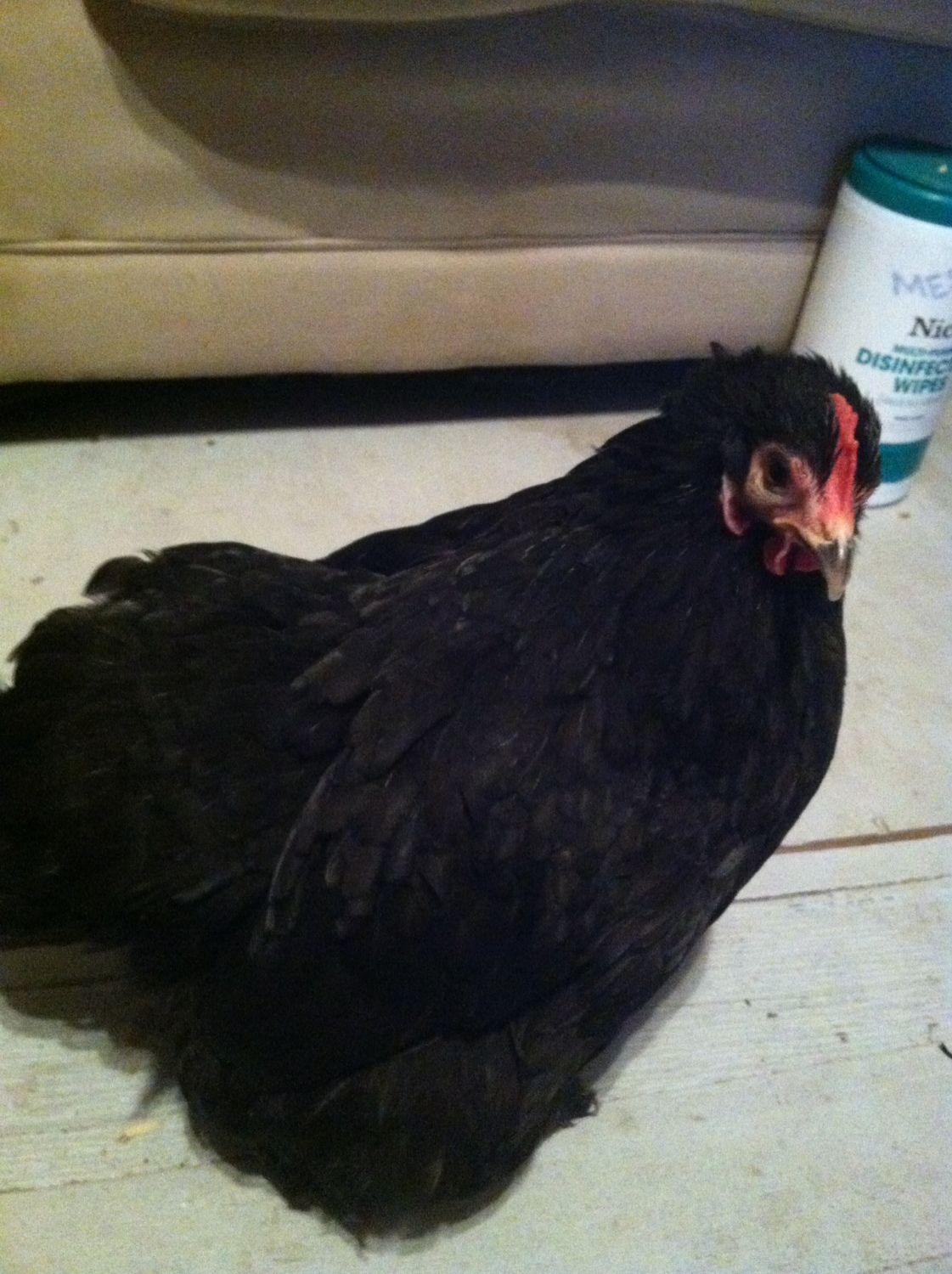 So adorable I love her. ok too many pic's to quote, would take up a whole page... lol love the pic's, once we get moved I might just have to some of those. I want BCM's so bad, I would love to have those dark eggs in my basket... but trying not to get a bunch of new critters right yet, it would be that much harder to move . I have at least 2 days of Just moving critters as it is.... lol That IS a big egg, congrats, hope its a double yoker maybe even a triple, only had 1 of those ever... but it was exciting. lol Red is cool. Please let us know who laid it when you find out. now it brain picking time. Was given these 5 hens over the weekend by a man that was getting out of chickens. He didnt know what he had, He said they were chickens what else do you need to know???? Sooo I am thinking Leghorns, but the comb aint big enough and they are round and short tails, well the ones that have tails, they arent in the best shape but I'm working on it. They are supper sweet, they started following me around the 1st day. and today I was on my hands and knees cleaning out the old bedding and replacing it when 2 of them jumped on my back and stayed there the whole time I was working. I'm falling hard for these girls. This last girl is always puffed up like she is cold but don't show ant signs of being sick. ?? Any op's on what breed they might be would be great. Not that it matters I just like to know what I got. and yes I know I just said above that I am TRYING to not get any more critters, but I couldn't see these girls get their heads pulled off cause no one would take them.