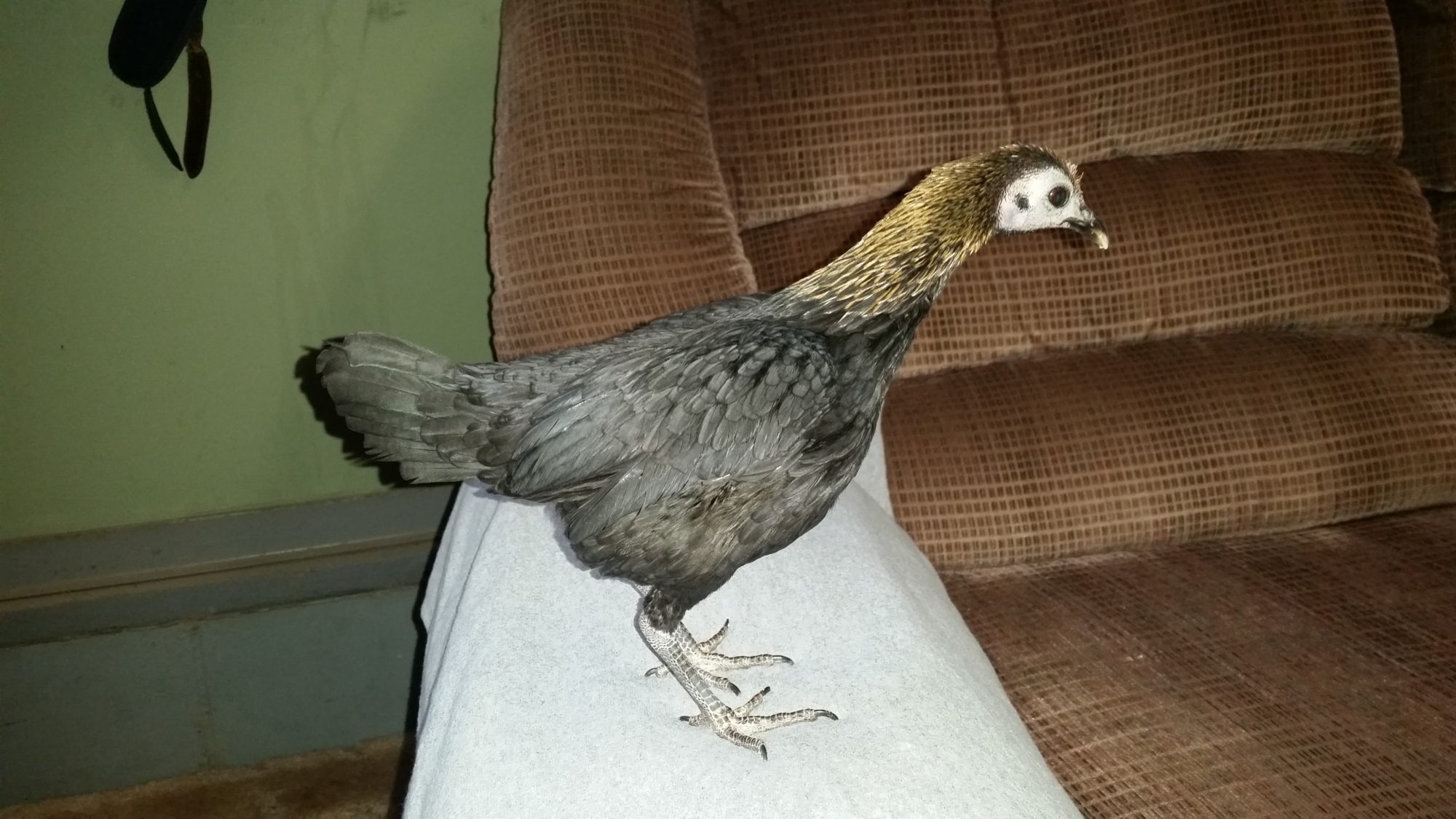 This is my new Modern Game bantam hen. She was rehomed to me b/c the others in her flock picked on ner too much. So, she is living in my garage for a couple months until it gets warmer. Hope to add a few more of these guys this spring, by far the most docile, calm bird I've been around. She spends hours sitting on the armrest of the couch watching tv with me.