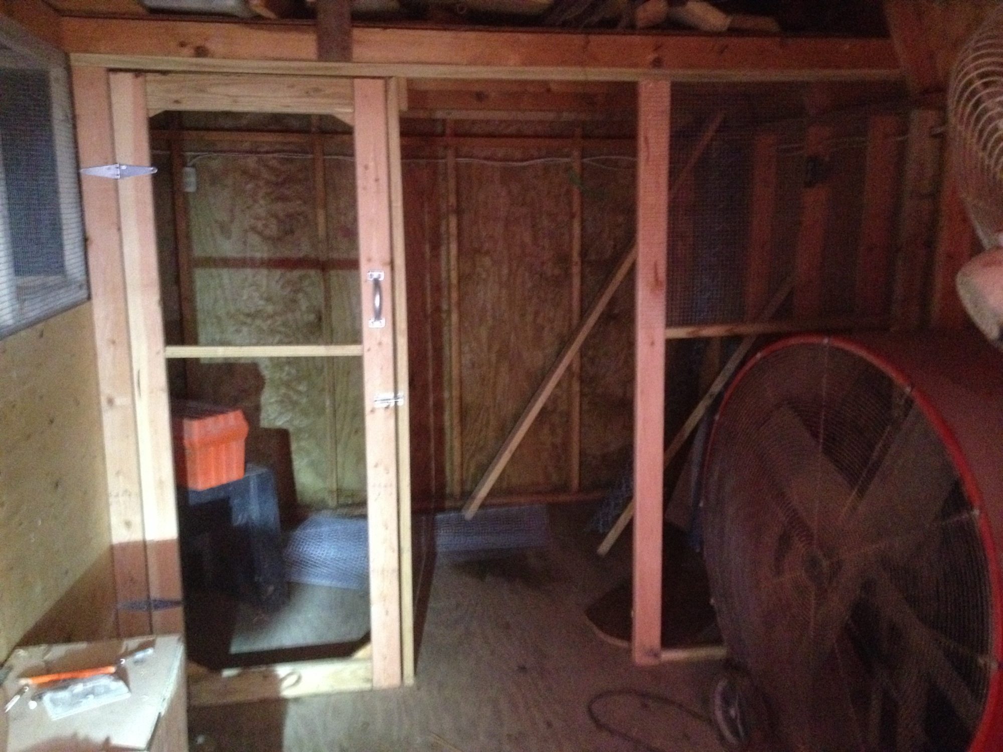 2. Add a couple of roosting bars. This is rather easy as they do not have to be perfectly straight (level is good though) and many sheds are framed in a way that it is so easy to screw down a 2x4 onto the existing framing