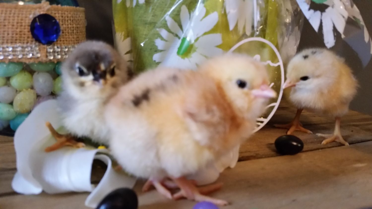 My results from the Easter H-A-L 7 eggs set; (6 were fertile) *These eggs were chosen by my broody - not me) Day 6 - Eggs moved to incubator & clear one tossed. Day 18 - All looked good Day 21 - Nothing; not even pips Day 22 - All 6 hatched. Now let's play find the chickies! Can you see all 6?1 is a pure lav orp. 1 is a Lav Orp x Sussex/Orp. The other 4 are EEs, I think. (CCLxLav Orp or EExLav Orp) Either way, they're all cute & healthy.