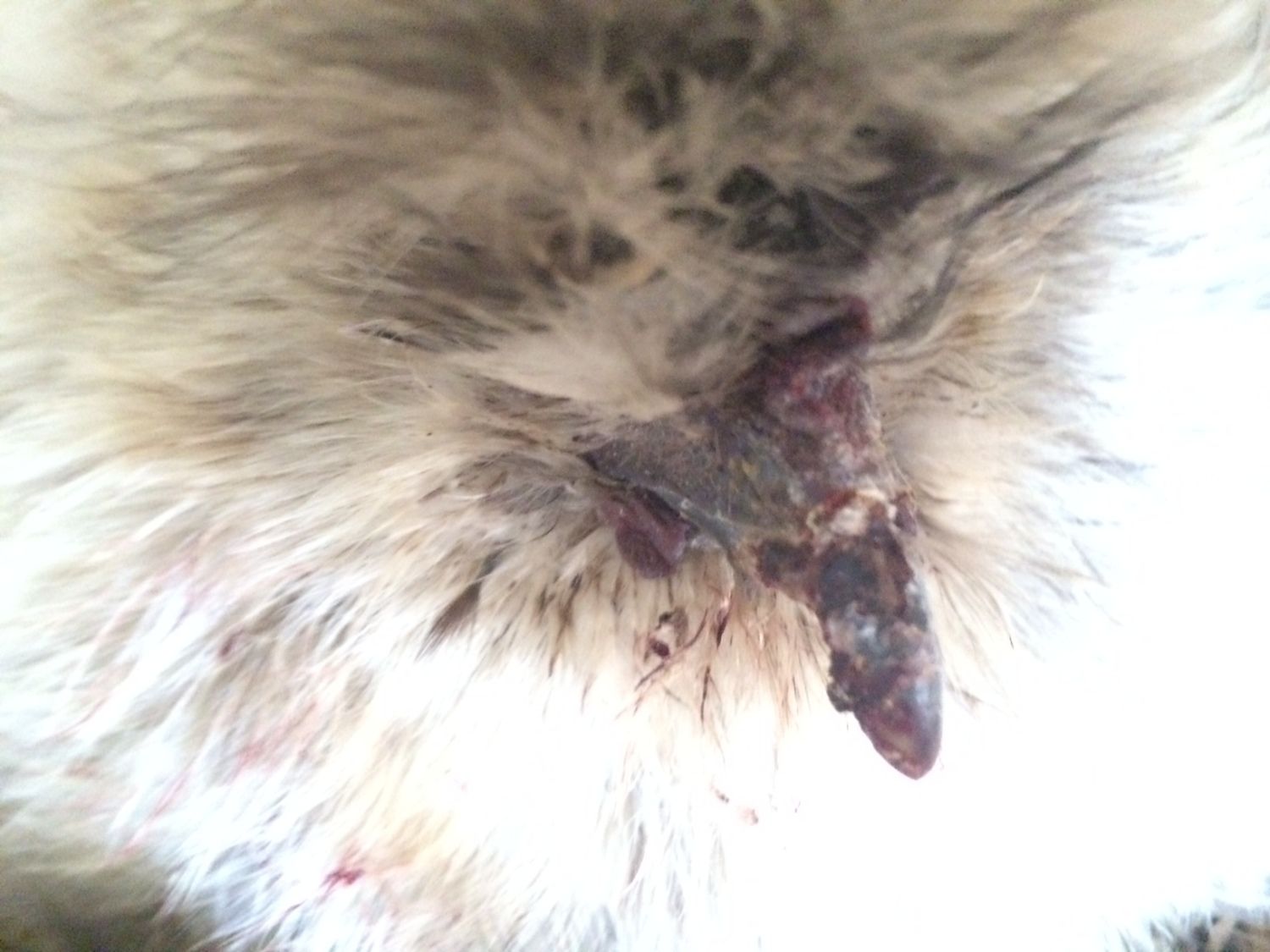 We figured out she got in a fight with one of our dogs, defending her nest. He has a scratch to his eye.