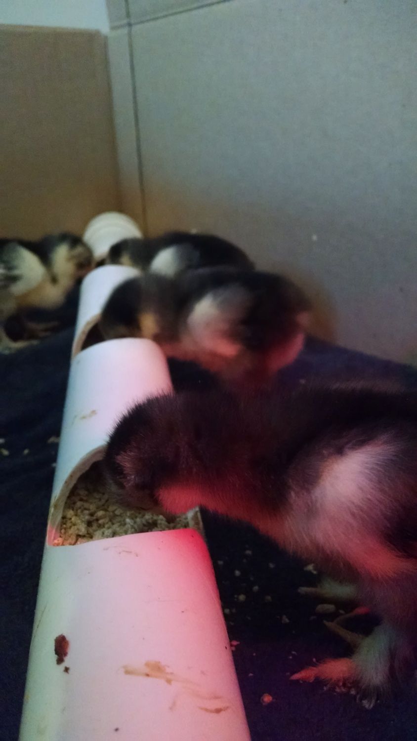 nice feederI made this feeder last year and as soon as the chicks got bigger they were able to scratch the food out of it. I was feeling like it was such a waste but I get to use it again with the new babies!! It makes such a difference. These little guys aren't big enough to scratch the food out yet so they aren't wasting as much.