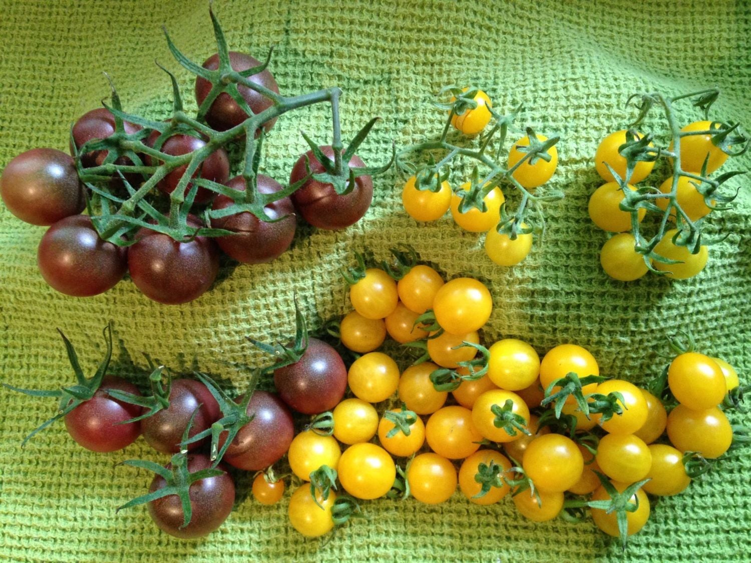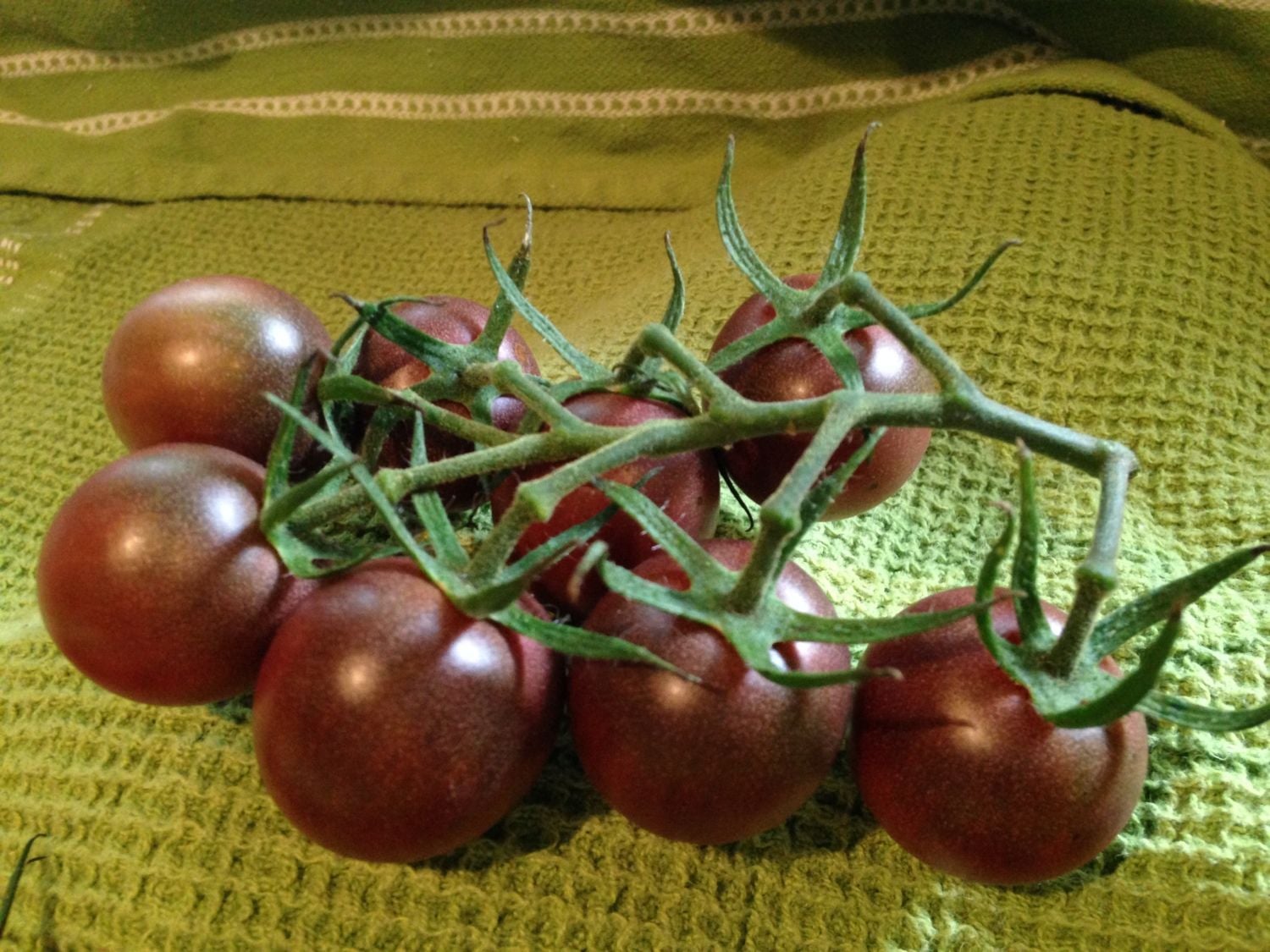 a cluster of Black Cherry tomatoes