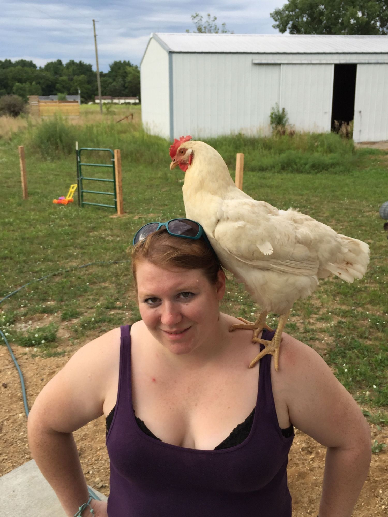For good measure here I am with one of the hens named Crackers. She's semi tame if it involves treats.
