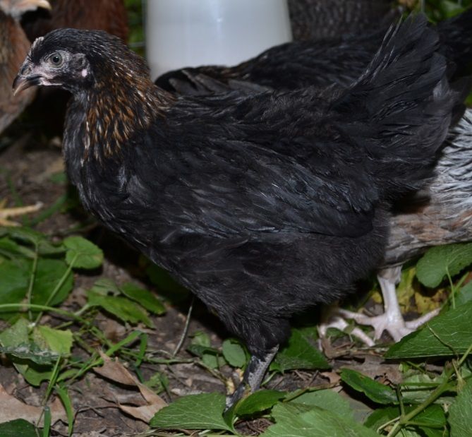 As for your birds... They don't really look like BCMs to me... :/ Maybe black sexlinks? BCMs should only have copper color in their necks, not their chests and backs. Cutie!Ok I mentioned in an earlier post that I have a mystery chick I could use some help figuring out what she could be, Then I couldnt get the pic's to load, so I'm going to try the pic's again would be allot easier to guess if ya can see what she looks like.![]()