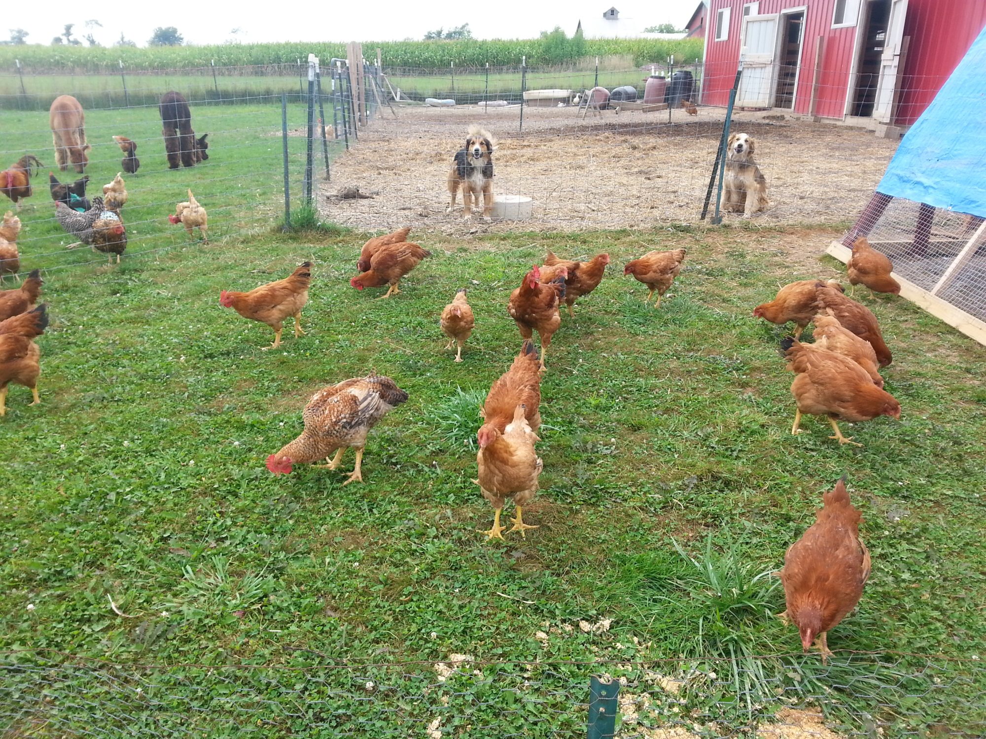 Spending time with my Dark Cornish this evening, very calm, interesting birds. They seem small, but super bulky, heavy compact bird. Adore my roosters, the younger fella actually likes his neck rubbed and talks to me. They do NOT like one another, so may do 2 pens eventually. Cockerel is separated from the rest, but he sits outside the coop all day. Youngest hen is laying now, the older girls are probably still settling in after moving here. Have several new layers starting from the birds I hatched early this spring, lots of cute lil pullet eggs.