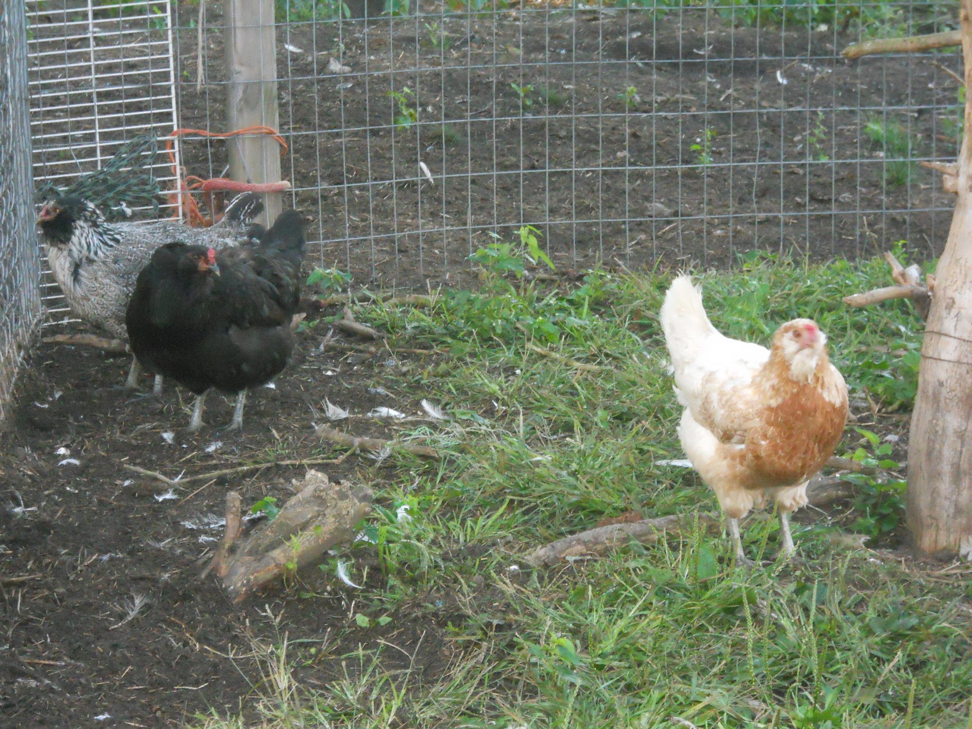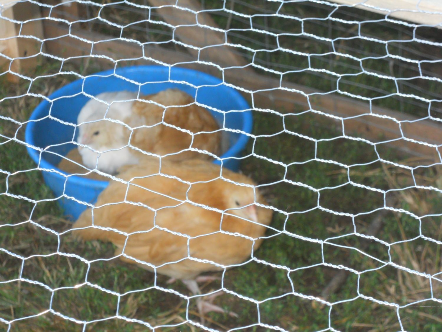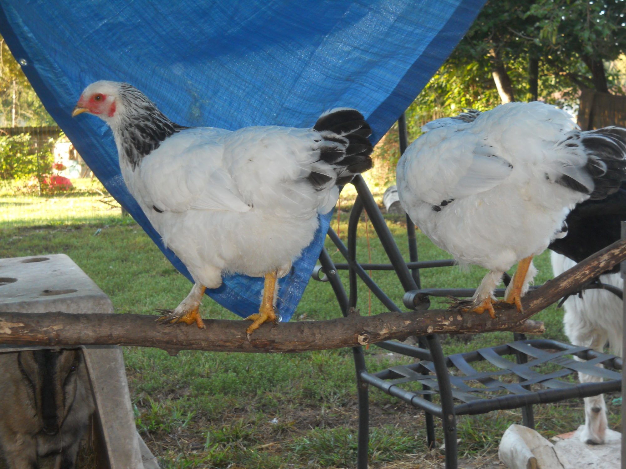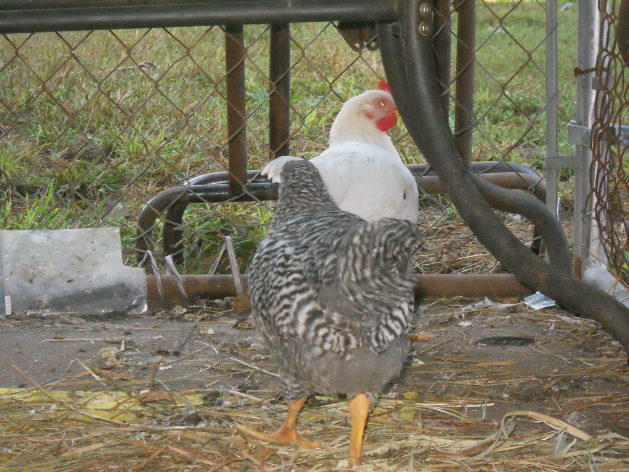 These are the 2 CX's we got in hopes that they are hens for the big guy ( Waddles ) on the right. And yes I gave them a bath but they wont stay OUT of the dusting hole... lol
