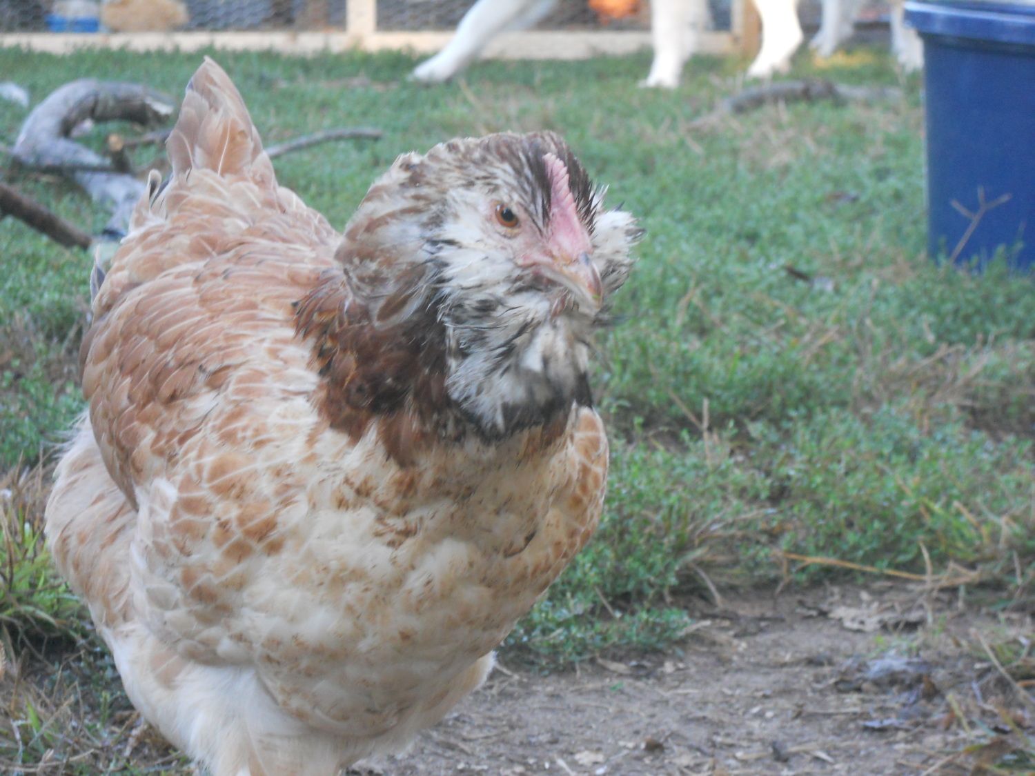 This is Lucy, she loves me and DH, always wanting to sit in our laps, UNLESS one of us have the camera in our hand ... then you get the back side of her. We have no ideal what she is, we got her in a trade, when asked we just say " she a chicken ".