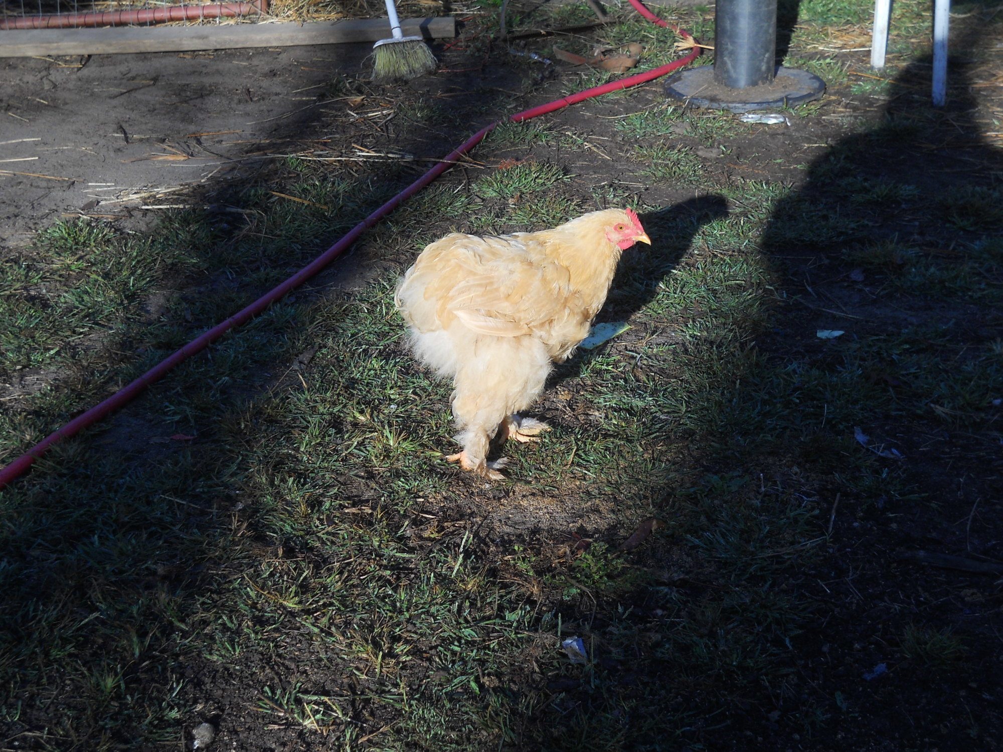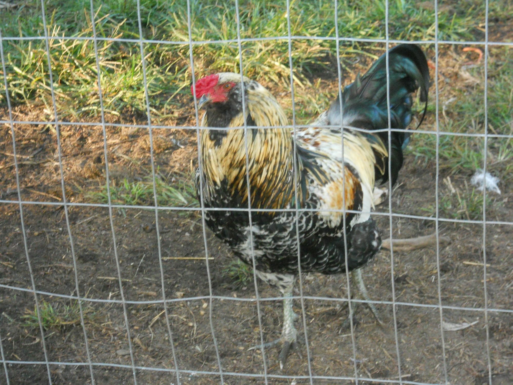 Using the goats hay feeder for a morning perch. Can anyone tell me if this Cochin is a pullet or a roo?