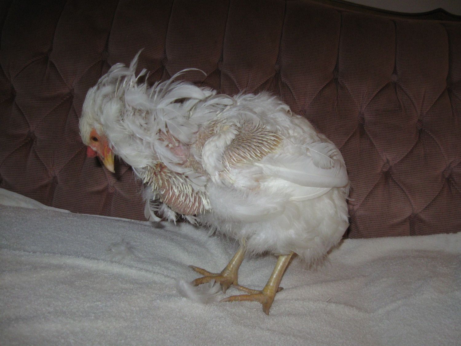 Here's poor Princess. I had to bring her inside. She leaves a trail of feathers behind. In fact 6 fell off as I was taking these pics!