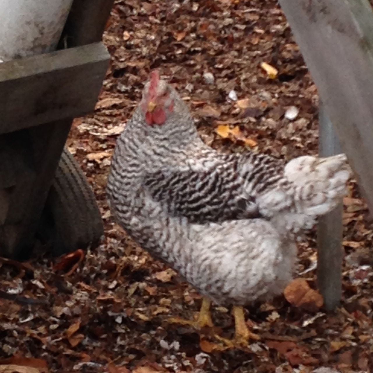 Has anybody ever had a Barred Rock who's feathers came in white post-molt? It's her first big molt, and I'm not sure if she'll get her barring back or not. It's weird!