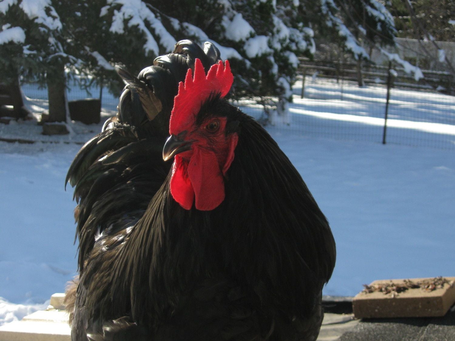 We got a ton of snow in Chicago last weekend, so all the chickens stayed inside their covered run. Our roo came outside for me a little bit but didn't like the feel of the snow. He jumped up onto a swing & also walked only on the roof & other areas I cleared of snow.